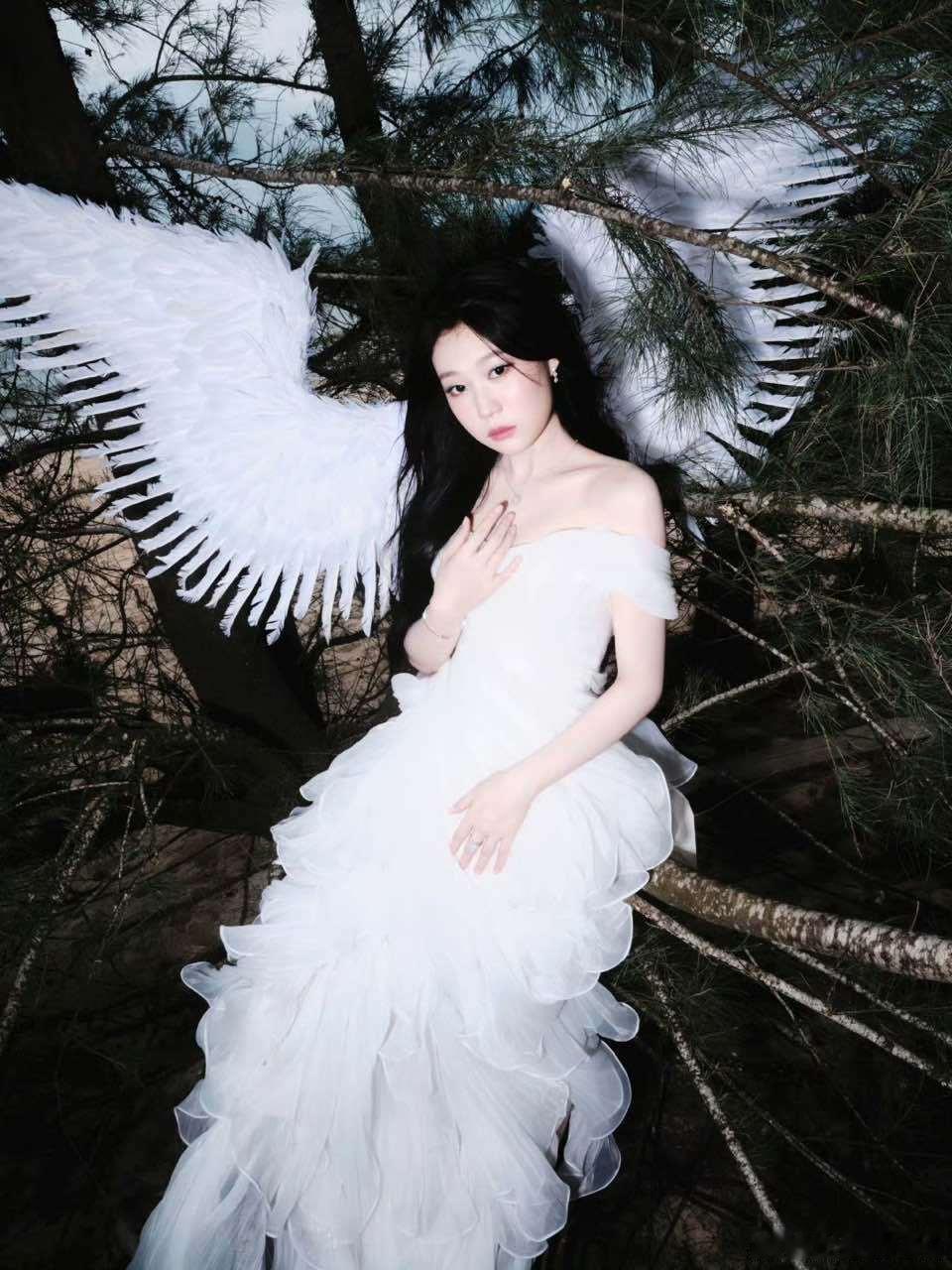 沈佳润天使翅膀沈佳润白色羽毛裙 救命啊!这也太好看了吧!