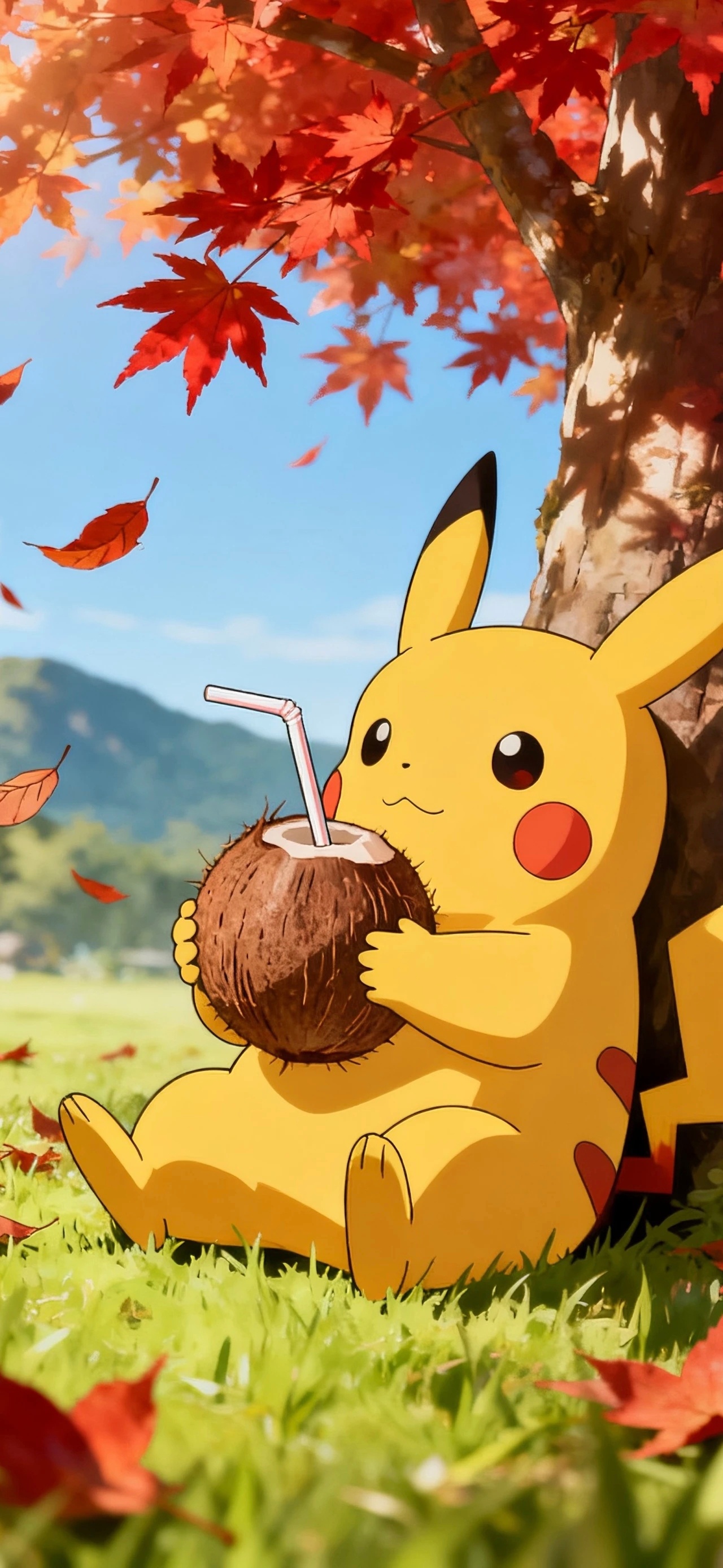 动漫[超话]次元整活好有意思皮卡丘 喝椰汁的皮卡丘宝宝,我也想喝一口阿!