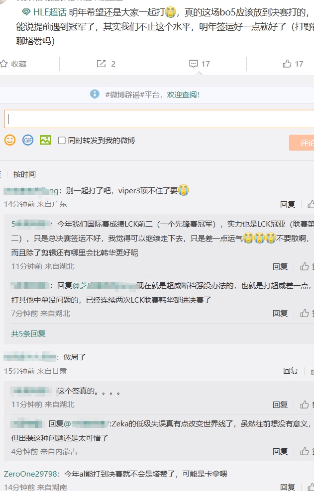 直播吧10月28日讯今日S15八强HLE以1-3不敌GEN,赛后HLE超话十分悲伤:
