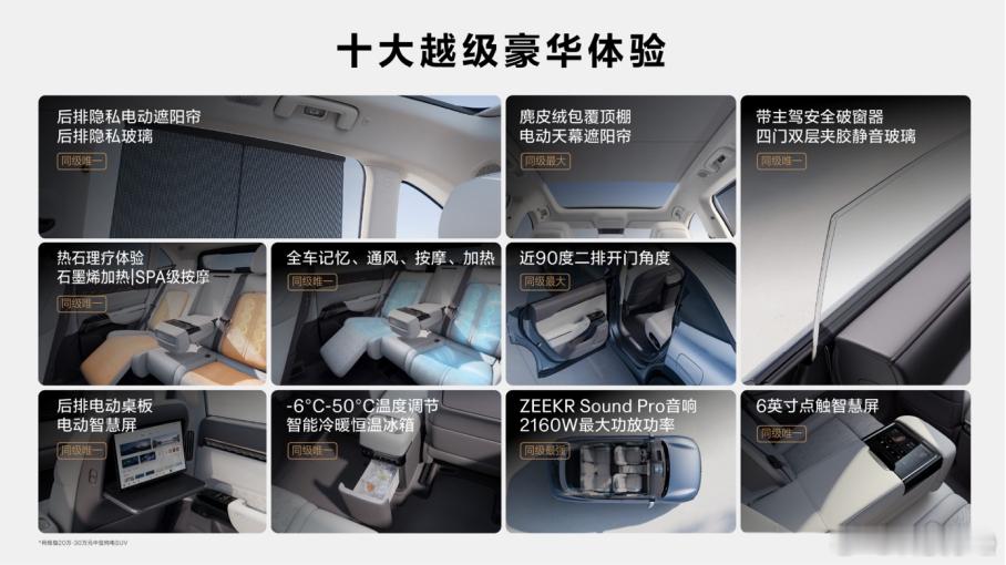 顶棚升级麂皮绒材质,后排座椅新增石墨烯加热及热石理疗功能。