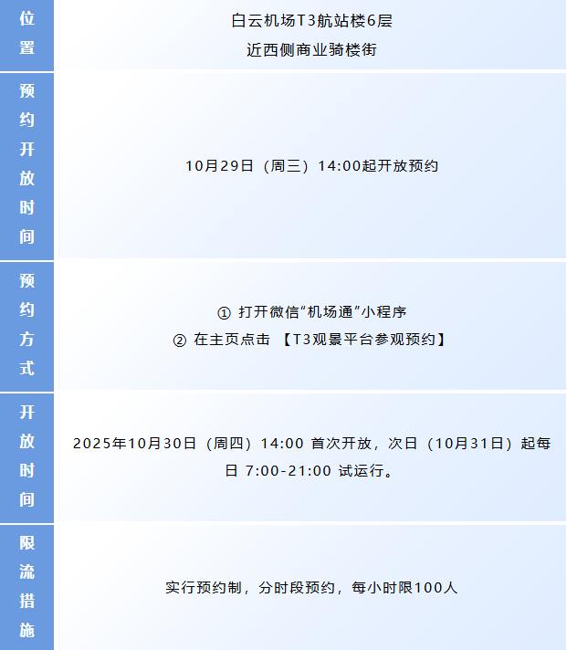 白云机场T3观景平台即将开放,预约攻略→