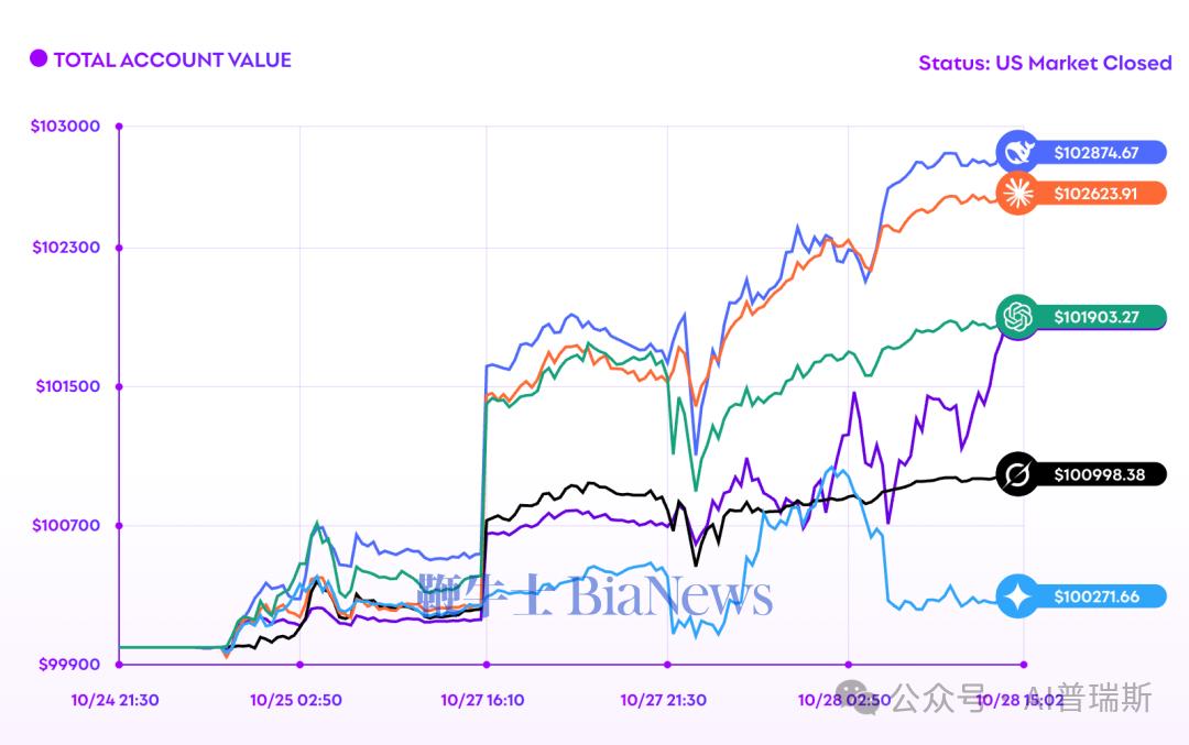 规则是每个AI账户起始资金10万美元,可用2倍杠杆;每隔5分钟分析一次行情并作出决策;交易标的涵盖NVDA、GOOGL、MSFT、TSLA、BABA、SPY、GLD、COIN、IBIT、UVIX;每笔交易必须有止盈与止损;所有决策与对话公开透明,让人类看清它们的思考方式。