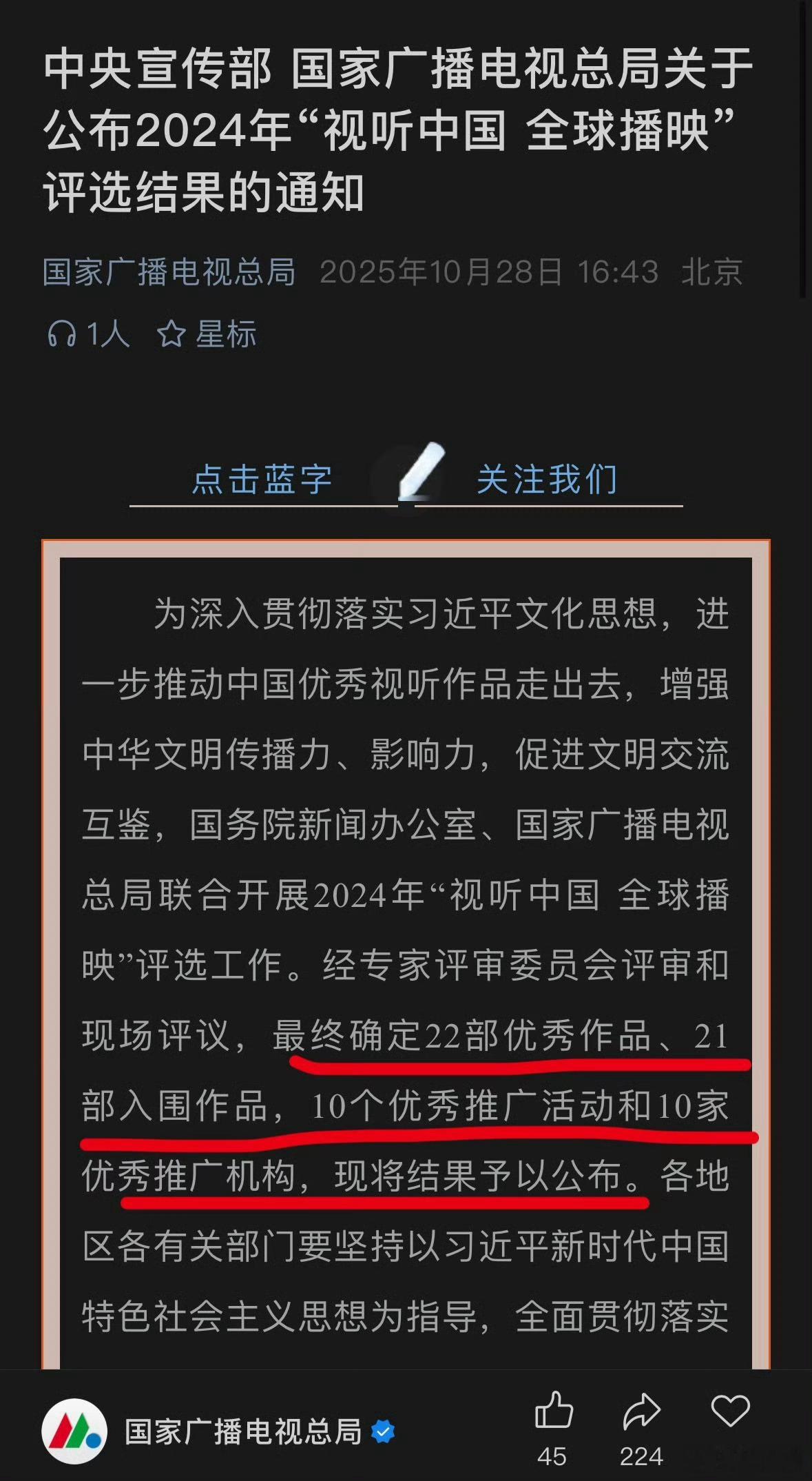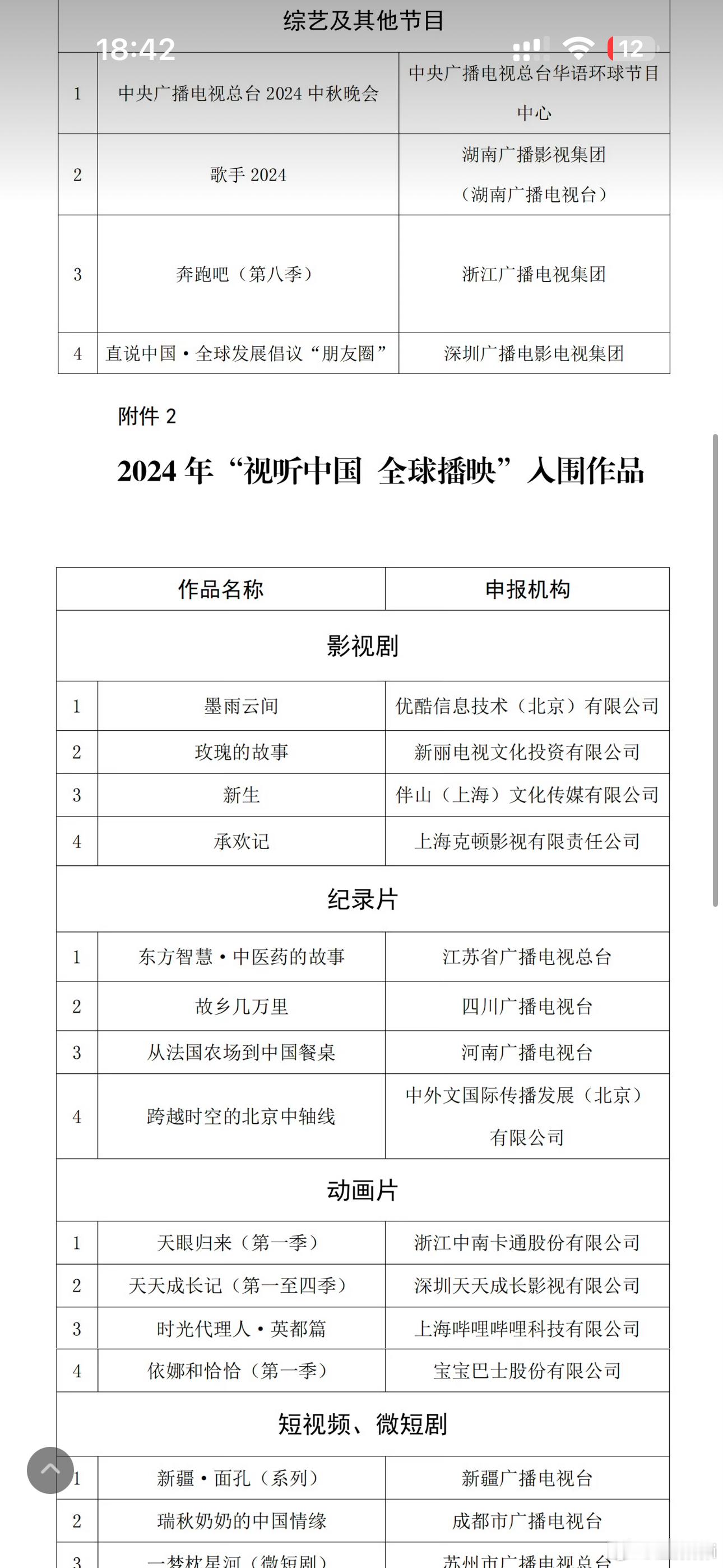 承欢记入围2025中国广播电视精品创作大会上公布的2024视听中国全球播映优秀作品