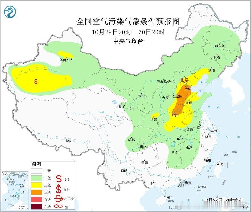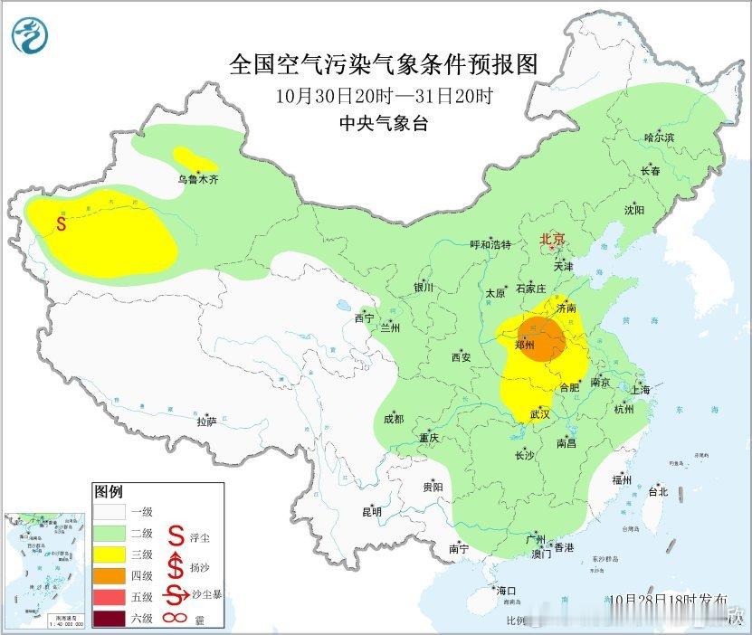 30日-31日有弱冷空气东移南下,华北的大气扩散条件将转好,京津冀的能见度、空气质量自北向南陆续好转。但部分污染物向南传输,河南的空气质量可能转差。