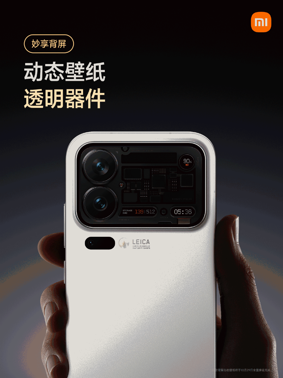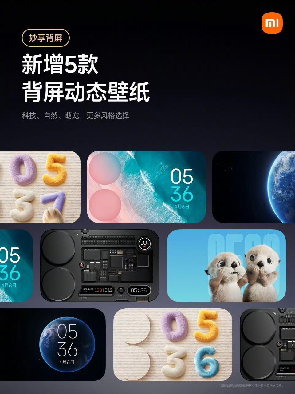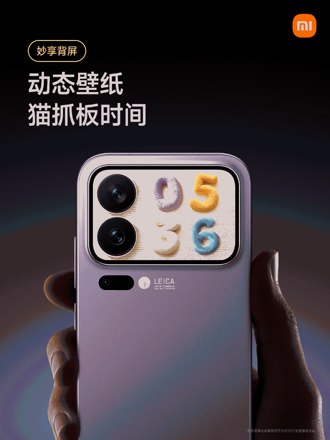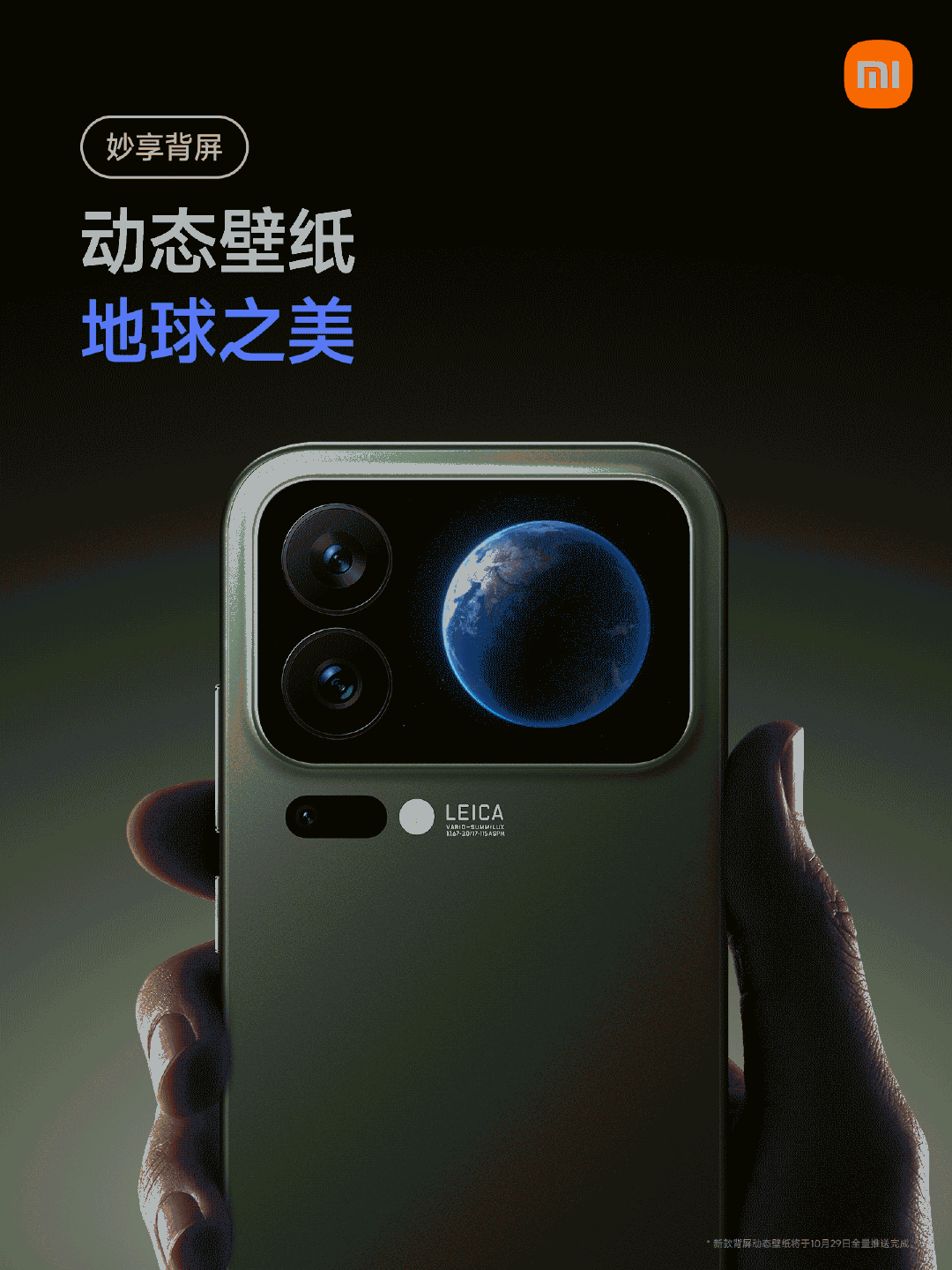小米17Pro系列妙享背屏迎来新玩法 10月29日上午10点,陆续推送更新 1. 动态大头贴模式 背屏大头贴模式支持拍摄动态照片,同时新增明亮风格模板 2. 全新对话翻译 正屏说中文,背屏即时显示翻译内容 3. 新增五款动态壁纸 - 猫抓板时间 - 双胞胎海獭 - 透明器件 - 地球之美 - 粉色沙滩 4. 全新掌机游戏 - 植物大合成 - 雪人推箱子