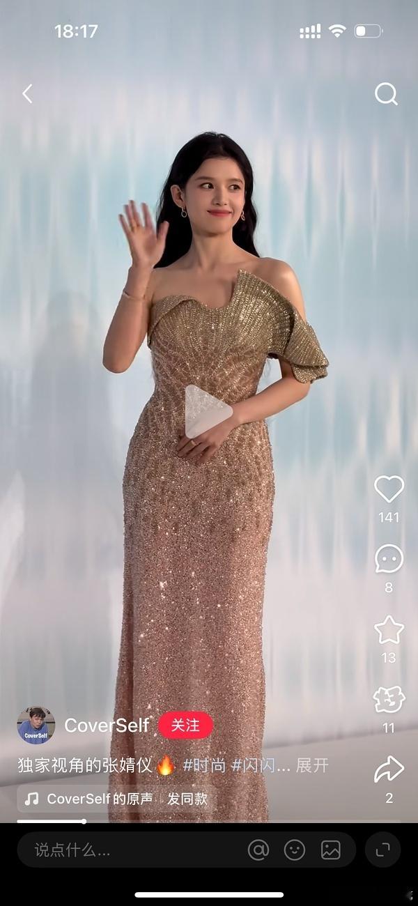 张婧仪香槟粉鱼尾裙张婧仪这样也要被说胖吗....对女明星太严格了吧[泪奔]好美好