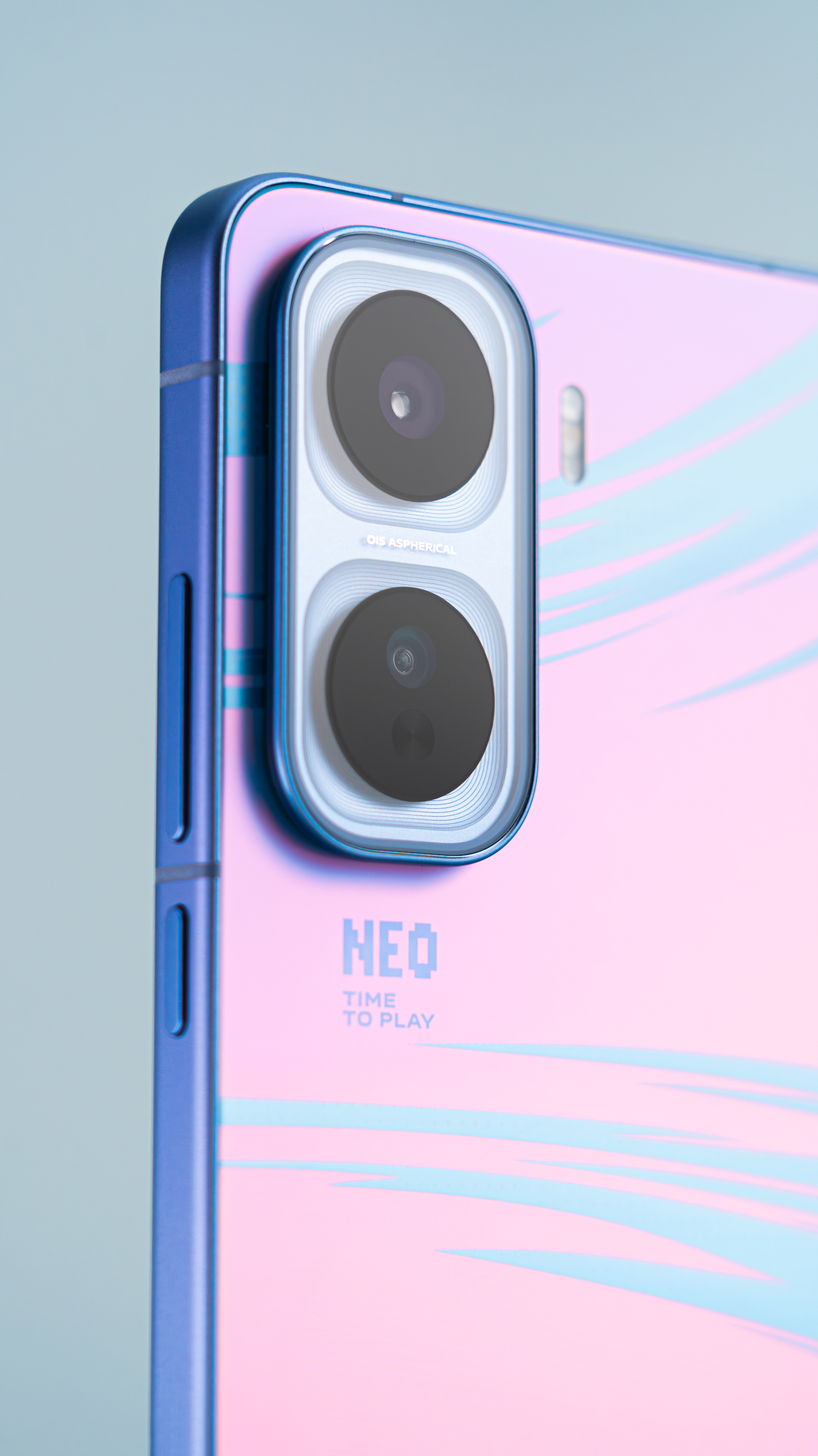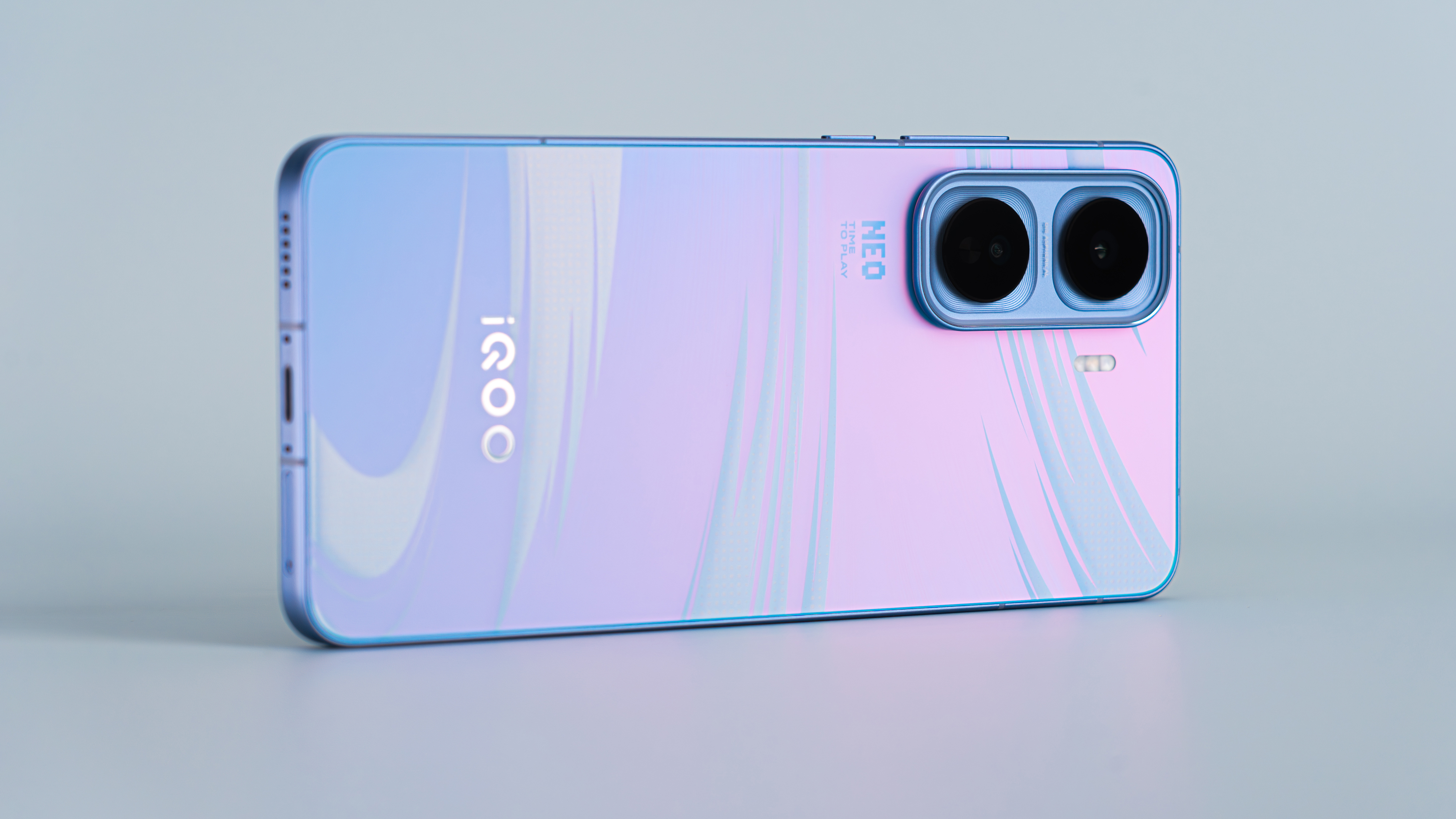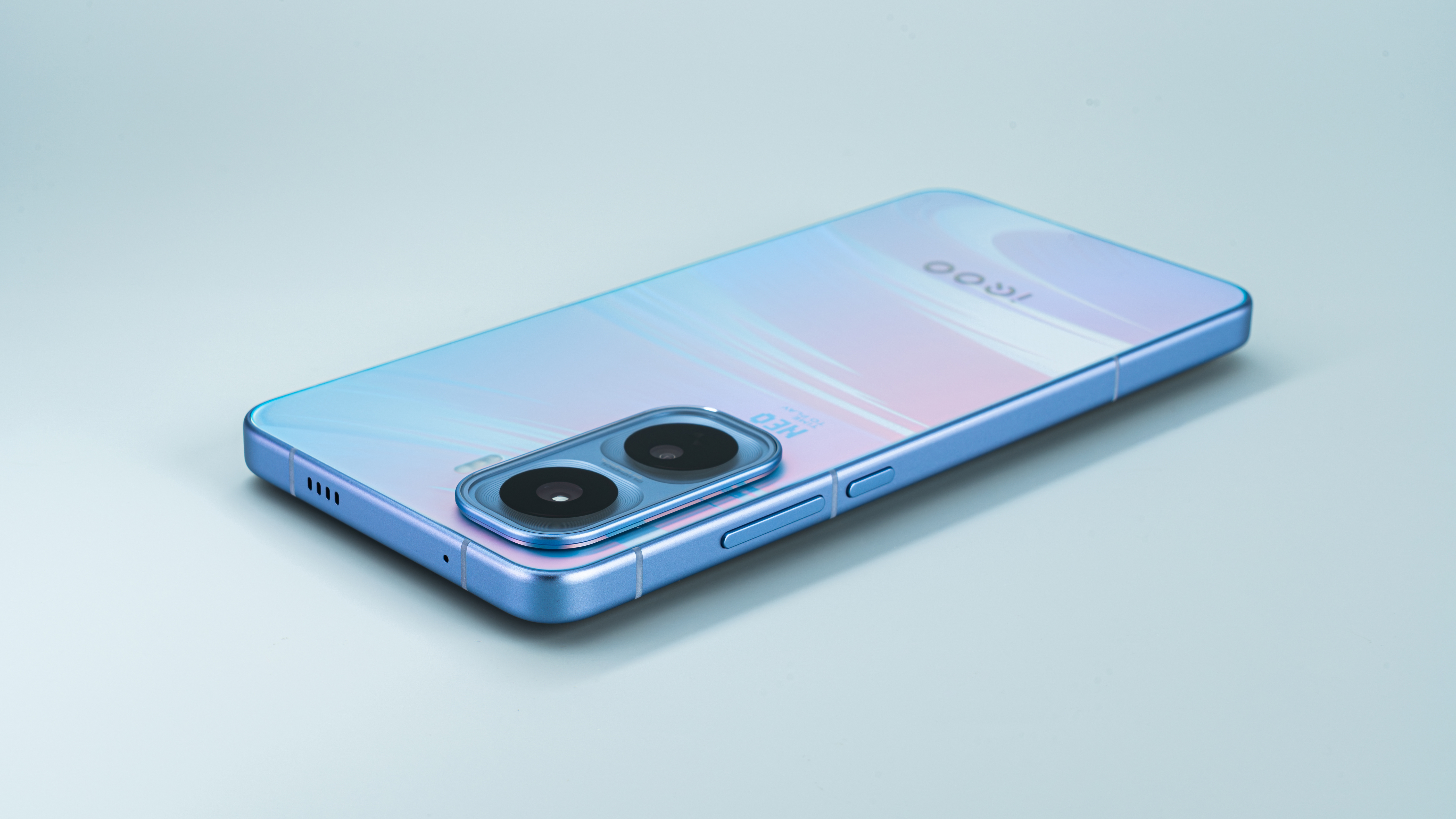 听名字就很二次元,它的调色说真的很难形容,iQOO用光刻技术+光学镀膜,做出了一个很酷炫的蓝紫色渐变效果,从不同的角度都能看出不同的色彩变换,整体效果有一种美式漫画的画风。iQOO Neo11外观