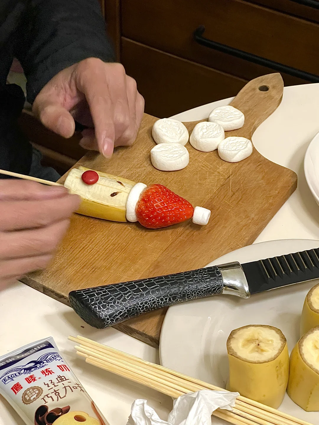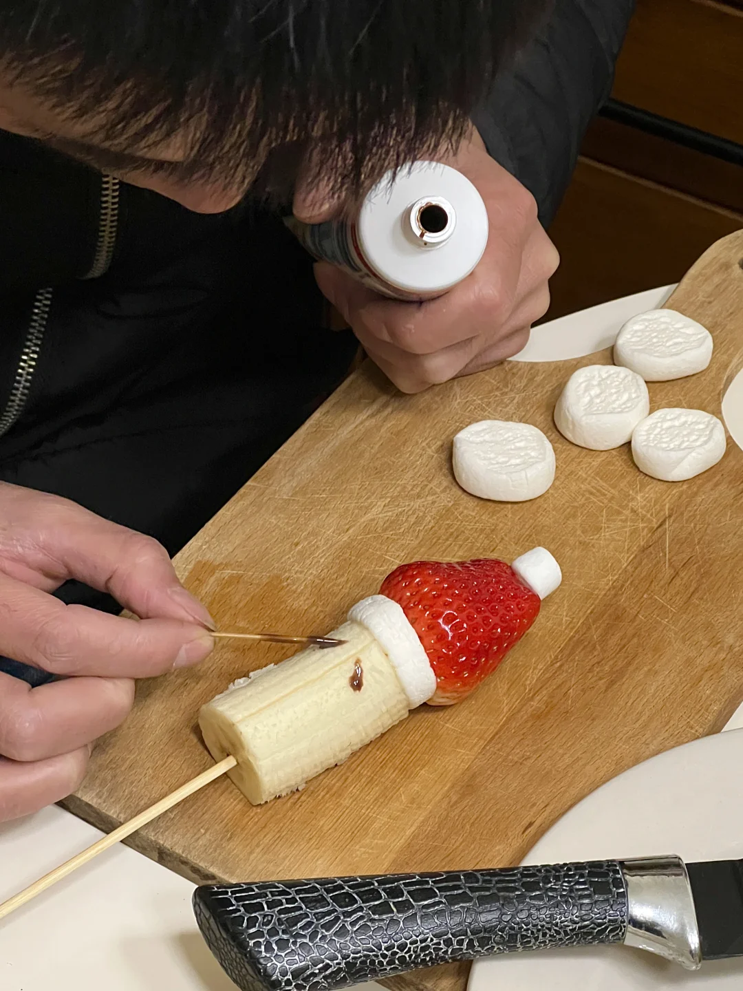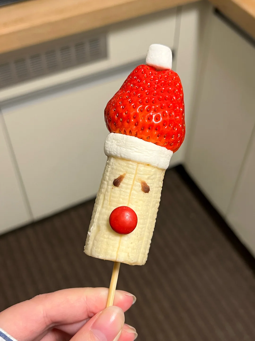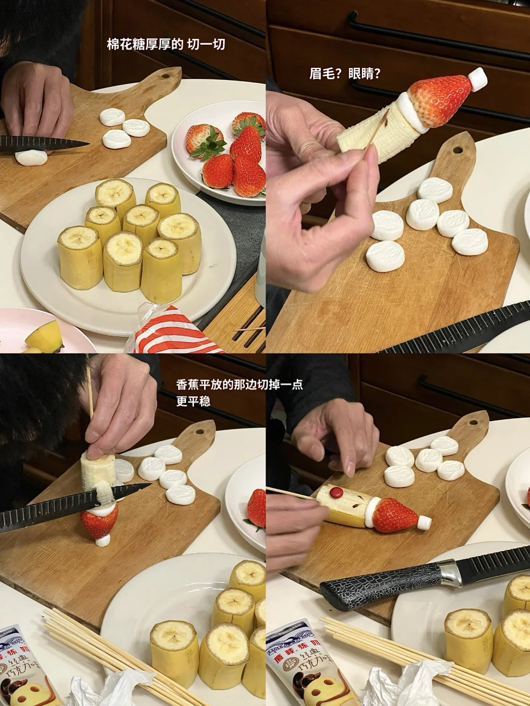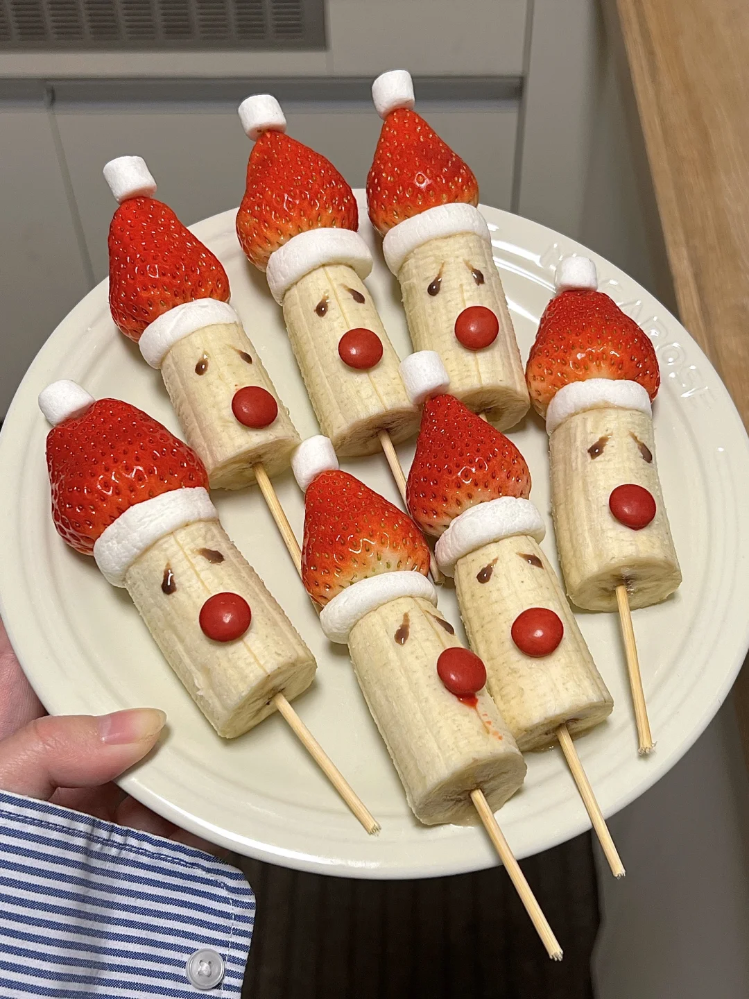 男朋友给我做的圣诞老人好像不太开心哈哈哈 但挺可爱的 做起来也很简单 有手就会,几分钟搞定!! 🎅食材 草莓、香蕉、棉花糖、巧克力酱、烧烤签 水果diy圣诞氛围果盘