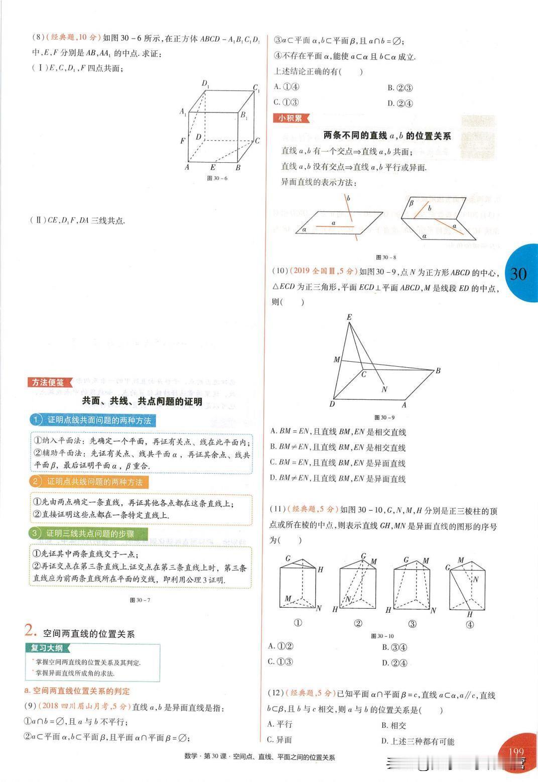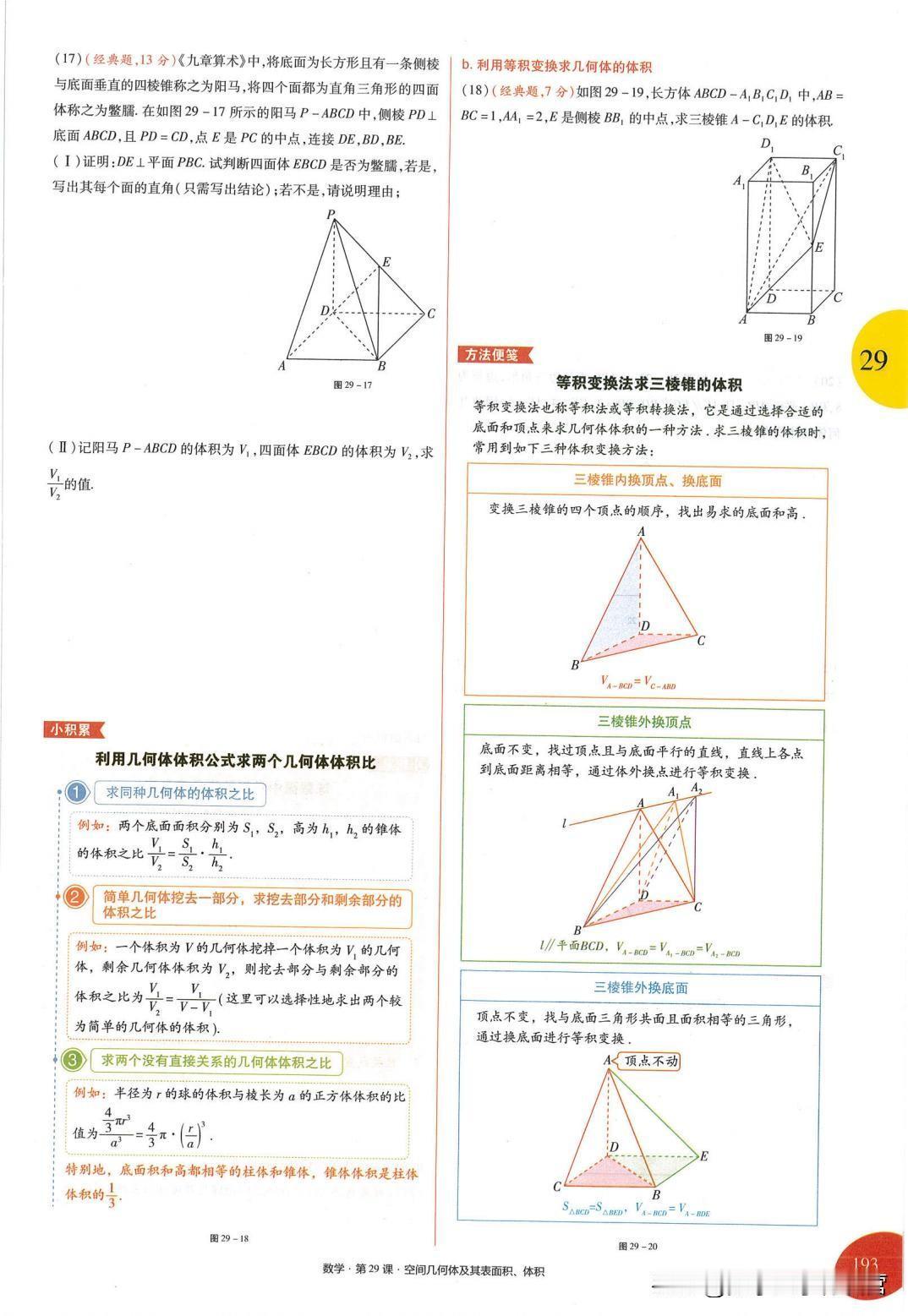 立体几何学习方法 1、熟练掌握基本概念和基本公式; 2、熟练掌握判定定理和性质定理; 证明线线垂直常用的几种方法: 1、三线合一; 2、勾股逆定理; 3、正方形、矩形、菱形; 4、直棱柱、正棱柱; 5、线面垂直、面面垂直; 6、正三棱锥对棱垂直; 7、直径所对的圆周角是90度。 3、掌握求距离求角度的方法; 尤其是求角度,线线角、线面角、面面角。 当你前面基础打好了,后面提升解题方法、解题技巧、解题思想就是水到渠成的事了。 立体几何很多都是解题套路,本质就是平面几何,组合在一起,就是立体几何了。