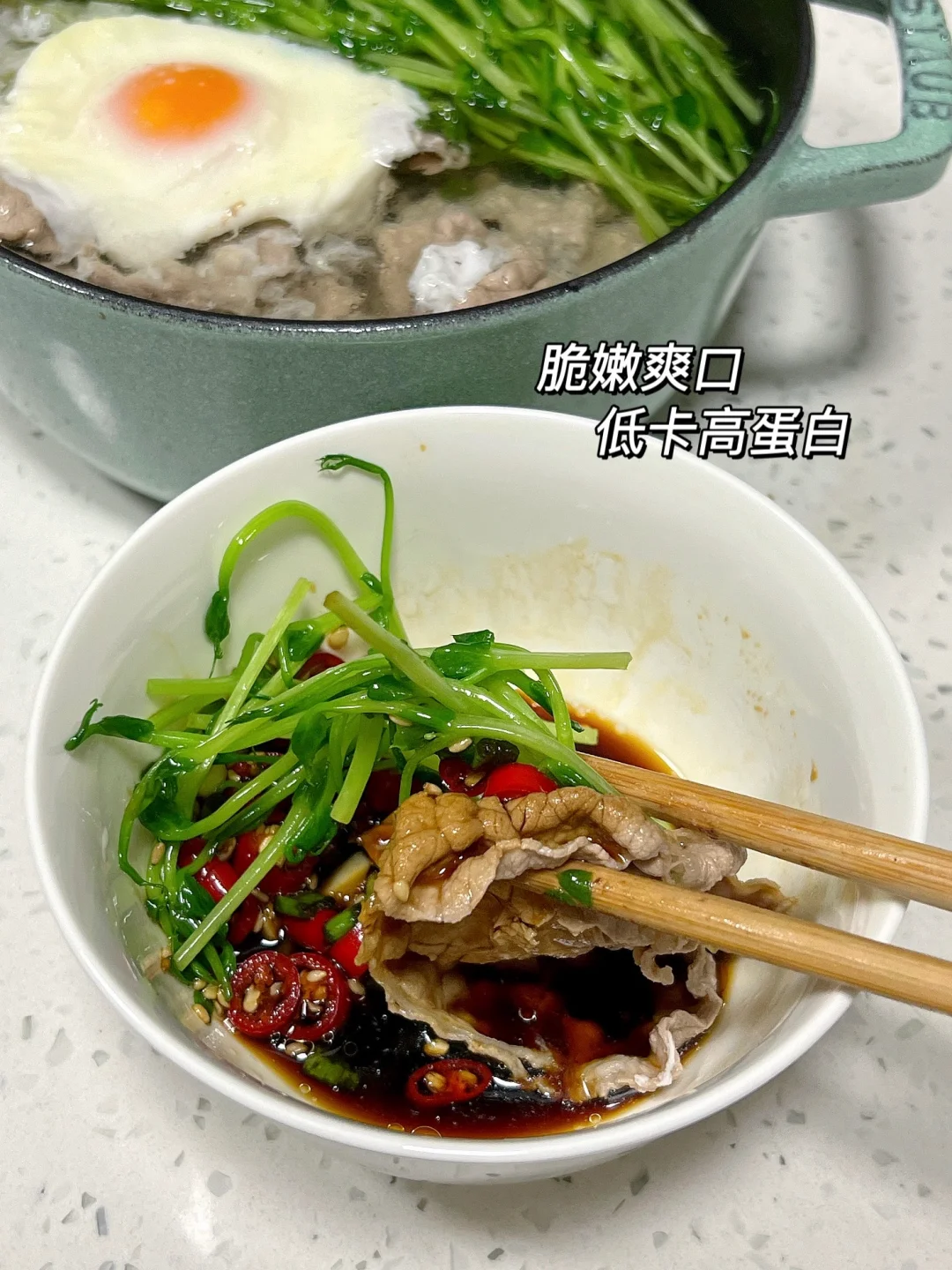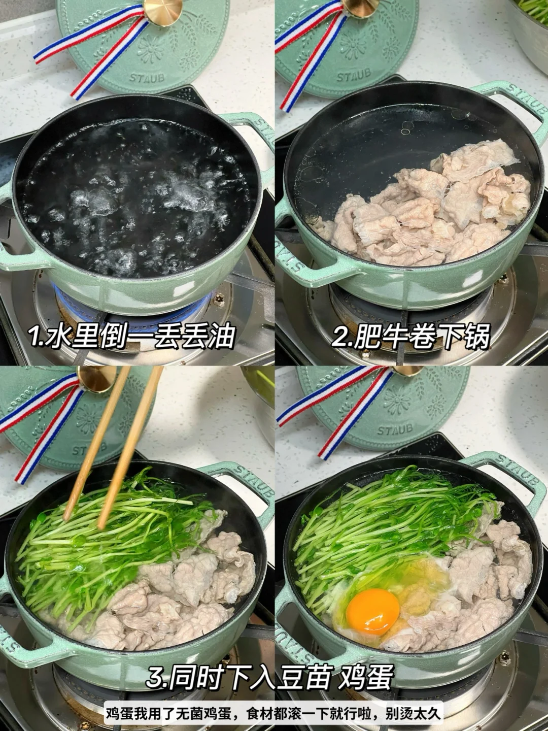 跟网友们学的肥牛卷豆苗,豆苗也可以换成豌豆尖🌱,满满春天的味道! 脆爽的豆苗搭配肥瘦相间的肥牛卷 快手!低卡!还好吃!!这是什么宝藏减脂餐!!! STAUB小雏菊更是为这道菜增添了一份春天的气息,与春天的生机勃勃相得益彰~ 🌸锅盖上的雏菊与麦穗图案,让这个锅不仅是厨房工具,更是一种生活美学。我很喜欢这个锅盖”旋风钉点“设计,当水滴沿锅盖滑落时会被旋风钉拦截,并再次凝结后均匀回落食物中,令食物鲜嫩多汁更入味! 目前已经大大小小用STAUB烹饪了好几顿饭,黑珐琅的内壁依旧细腻光滑,烹饪过程中也不易粘锅,油污也很好清理,现在已经是家里使用频率最高的锅具了。 🧑🏻‍🍳小小tips 1.肥牛卷有先稍微焯水,去除血沫后捞出备用。 2.豆苗可以换豌豆尖,或者再加些豆腐也行。