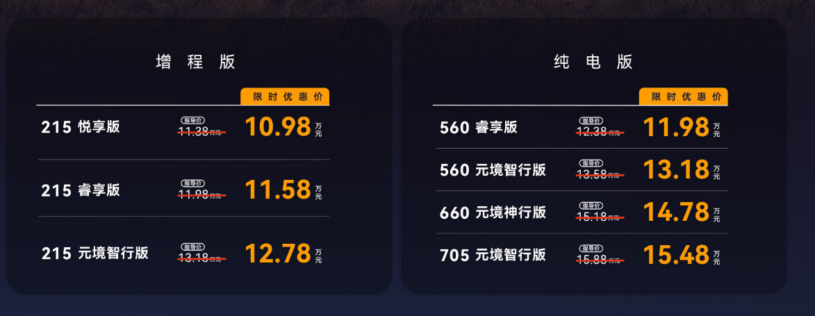 全新极狐阿尔法T5来了,纯电11.98万起,增程10.98万起,新车尺寸4760*1936*1650mm,轴距为2845mm,标配L2级辅助驾驶,高配车型搭载高通8775舱驾一体芯片,支持城区领航辅助,这也是为数不多15万以下搭载城区辅助驾驶的车型。全系宁德时代电池,纯电版15万內就给到了800V高压超充平台,增程版搭载宁德的骁遥增程专属电池,纯电续航215公里,满油满电综合续航1215公里。总的来看,在10-15万这个区间,T5的产品力还是挺不错的。
