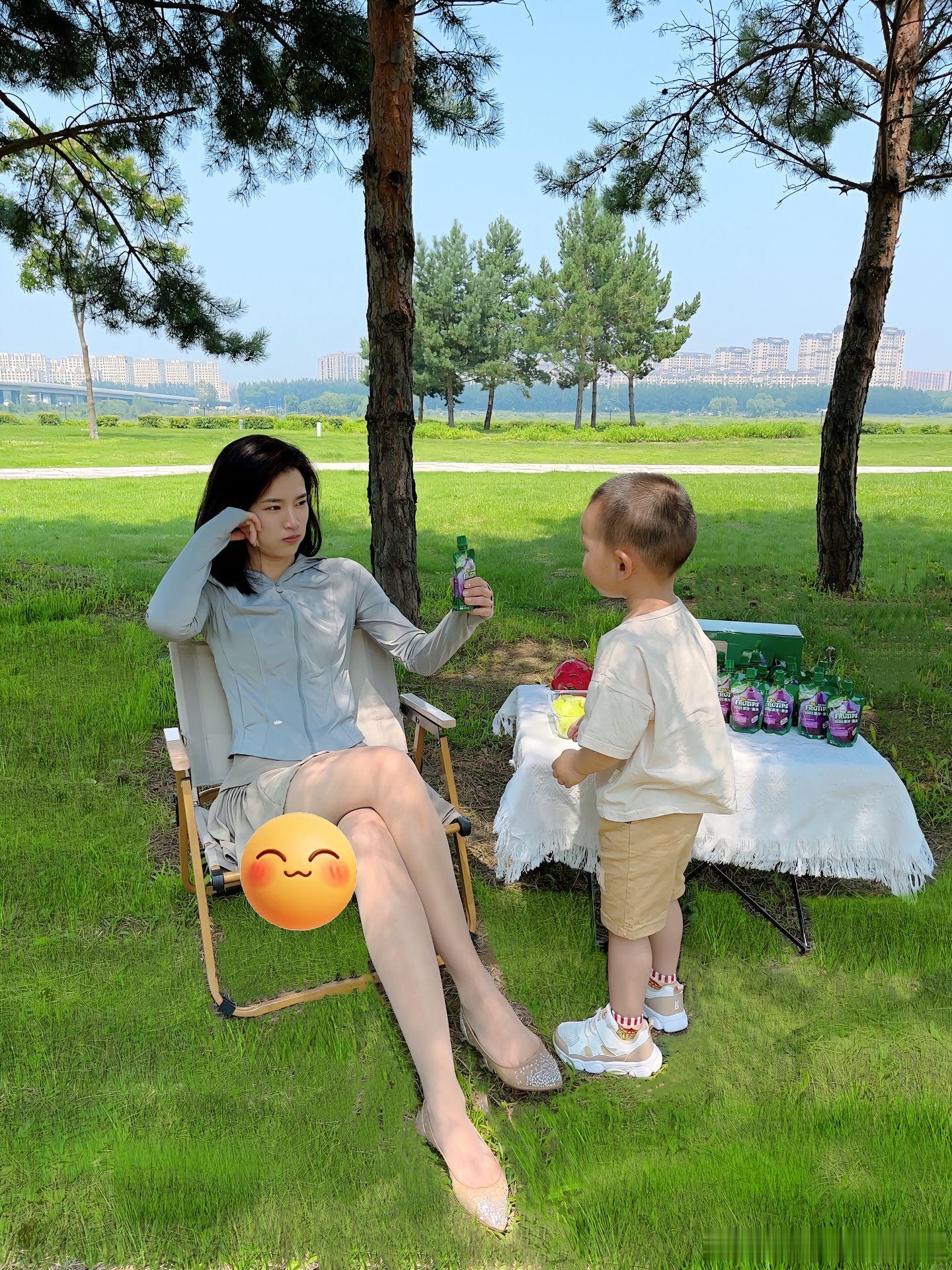街头偶遇一位穿搭很有气质的女士,浅粉钉珠上衣配浅蓝开叉裙,简约又精致,看着就很有