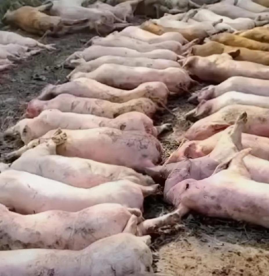 刷到广东罗定肉联厂门口堆死猪的视频, 真的看得人胃里发紧! 几十头死猪露天