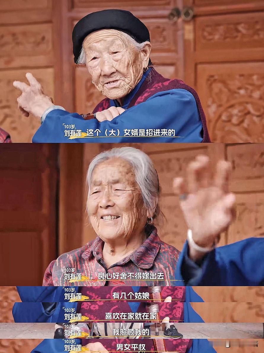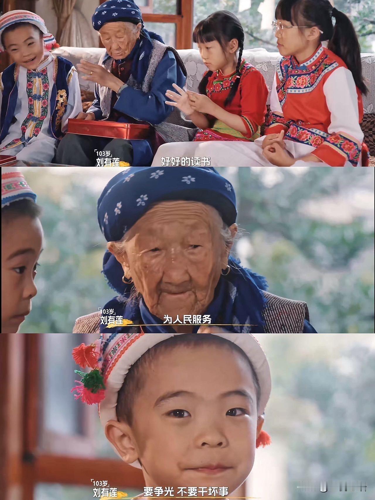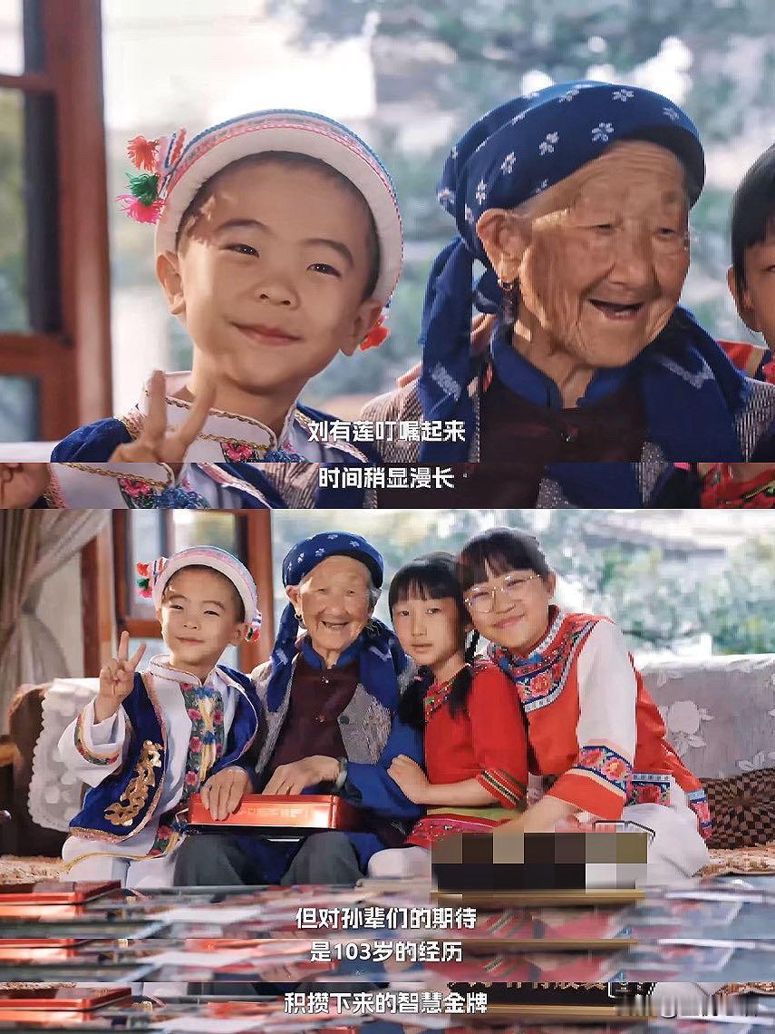 103岁奶奶的人生过得真精彩 《人生一万年》第二季, 被103岁刘有莲奶奶的故事狠狠戳中 生于旧时代的她没读过书, 却把“让娃读书”刻进骨子里。 村里人都说女娃读书浪费钱, 她偏要逆天改命—— 三个女儿俩读大学,一个读高中, 放在当年,这得多牛啊! 83岁的大女儿还黏着妈, 奶奶笑着说: “舍不得嫁女儿,女婿招进来”, 这男女平权的观念, 比现在有些人还超前! 她这辈子活得超带劲, 北京、西藏、西双版纳都去过, 脚步丈量了大半个中国。 如今五世同堂,家里总热热闹闹, 奶奶一句“好好读书,为人民服务”, 藏着最朴素的智慧。 这样的奶奶,才是真正的女性力量! 那个年代里很多女性不识字, 但却用最朴素的信念与勤劳, 托举后代,改变整个家族的命运~