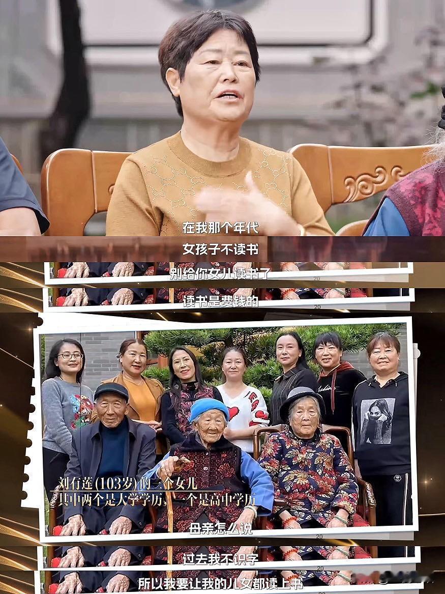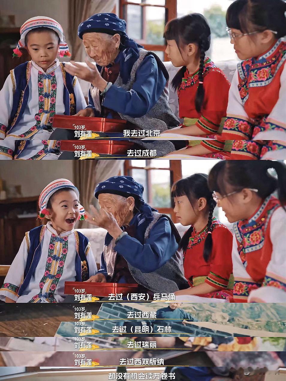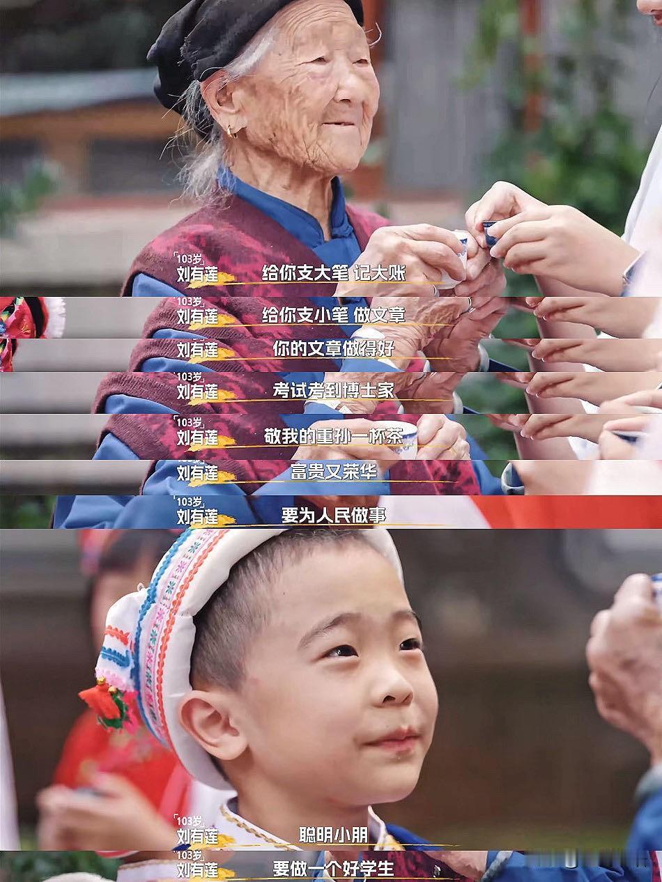 103岁奶奶的人生过得真精彩 《人生一万年》第二季, 被103岁刘有莲奶奶的故事狠狠戳中 生于旧时代的她没读过书, 却把“让娃读书”刻进骨子里。 村里人都说女娃读书浪费钱, 她偏要逆天改命—— 三个女儿俩读大学,一个读高中, 放在当年,这得多牛啊! 83岁的大女儿还黏着妈, 奶奶笑着说: “舍不得嫁女儿,女婿招进来”, 这男女平权的观念, 比现在有些人还超前! 她这辈子活得超带劲, 北京、西藏、西双版纳都去过, 脚步丈量了大半个中国。 如今五世同堂,家里总热热闹闹, 奶奶一句“好好读书,为人民服务”, 藏着最朴素的智慧。 这样的奶奶,才是真正的女性力量! 那个年代里很多女性不识字, 但却用最朴素的信念与勤劳, 托举后代,改变整个家族的命运~