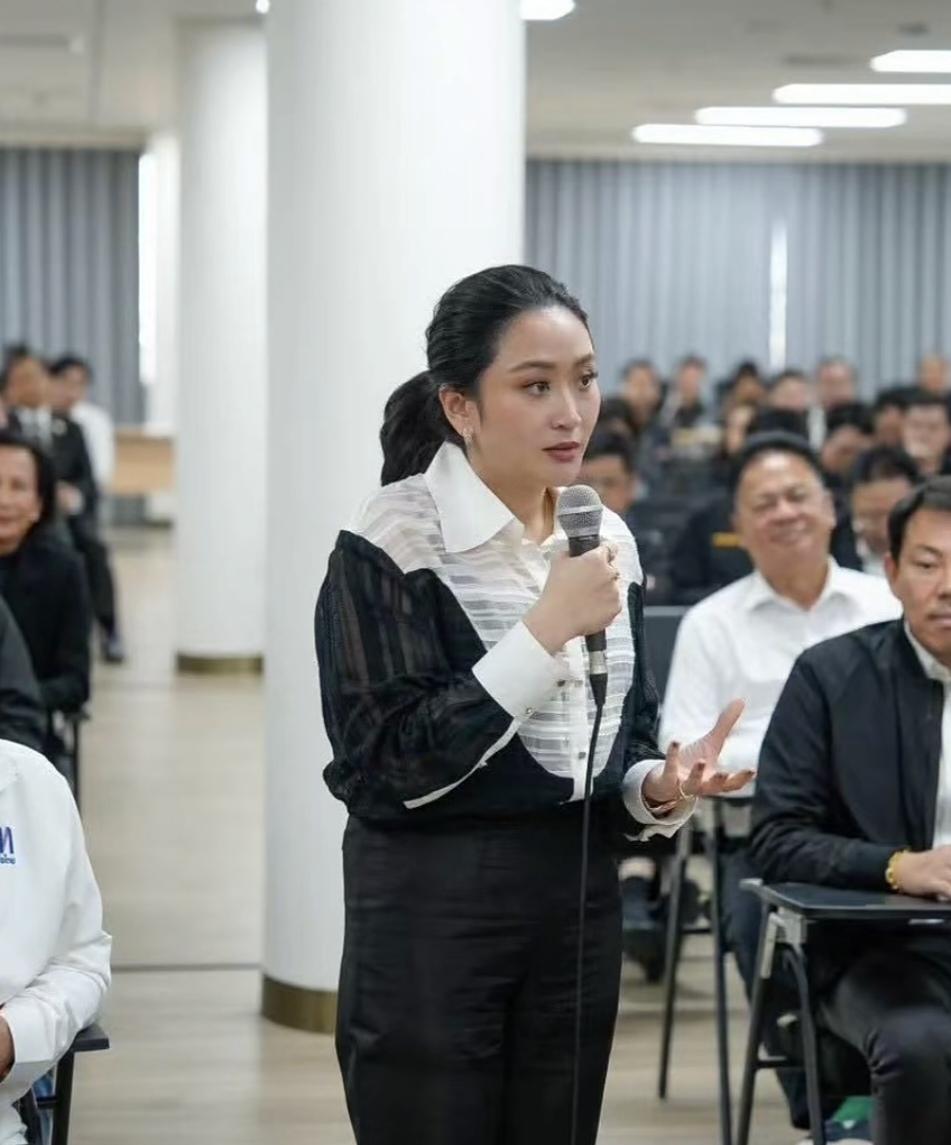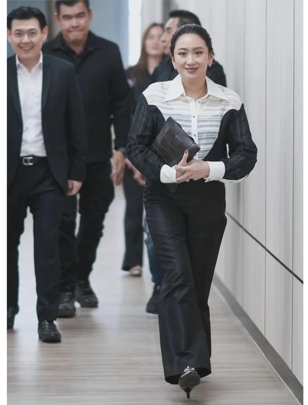 自信从容的佩通坦:10月28日,佩通坦现身为泰党总部大楼,出席众议员会议。议程主要是为10月31日举行的新党魁选举提前征求意见。 佩通坦身着一身黑白相间的套服,黑色高跟鞋,光溜溜的马尾辫,气质淡定、从容。39岁,正是年富力强的大好时光,作为为泰党大家庭领袖,佩通坦尽本分,会上热情洋溢地发言,与会者认真倾听。 工作中的女人最美,佩通坦的美丽,魅力犹在。为泰党党魁最后花落谁家,拭目以待!