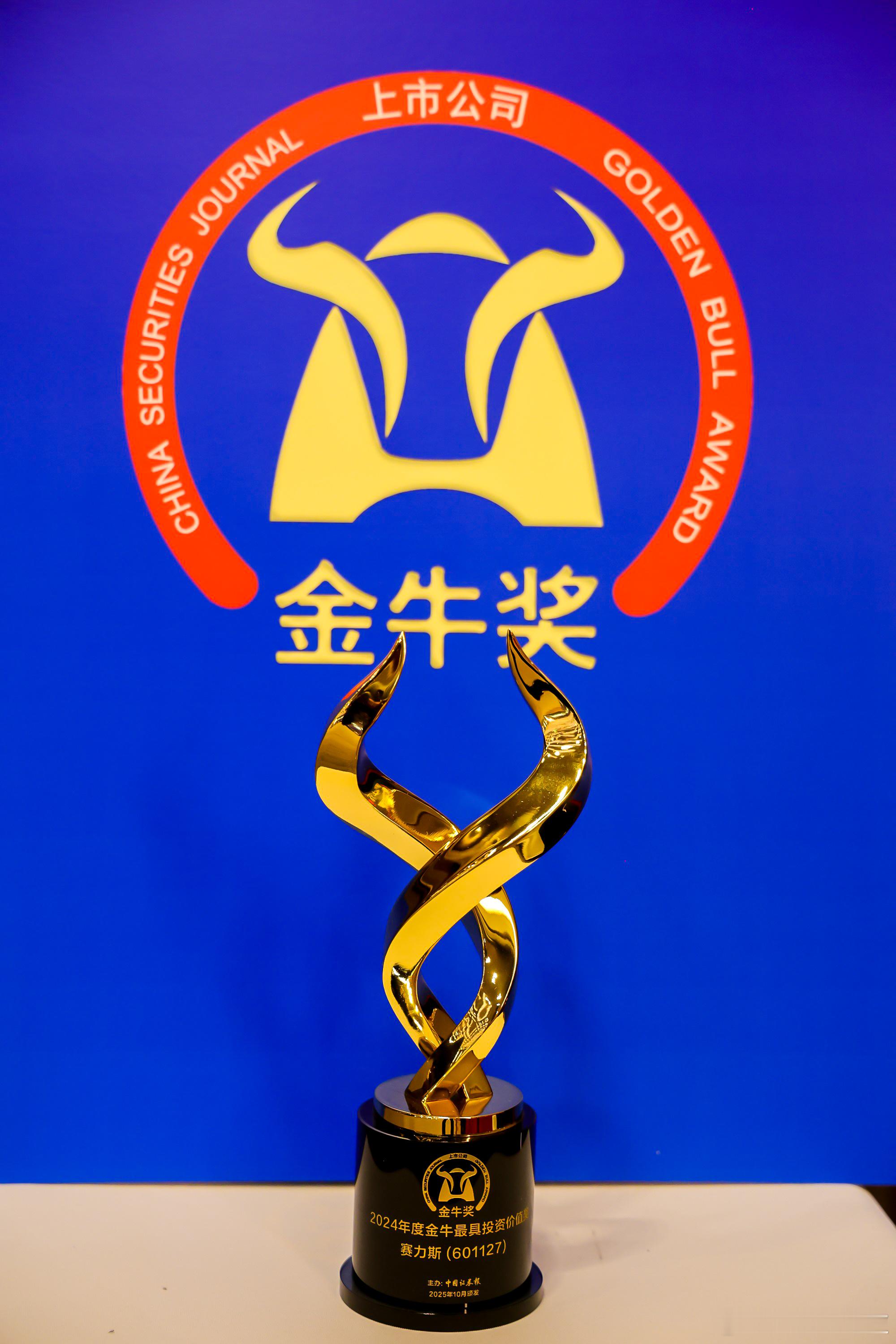 2025上市公司高质量发展论坛暨第二十七届上市公司金牛奖颁奖典礼今日圆满举行,赛力斯荣获“2024年度金牛最具投资价值奖”。上市公司金牛奖由中国证券报主办,是资本市场最具公信力和权威性的最高奖项之一。感谢评审们对我们发展表现的认可,我们将继续坚持长期主义,不负大家的信任和期待。金牛奖赛力斯