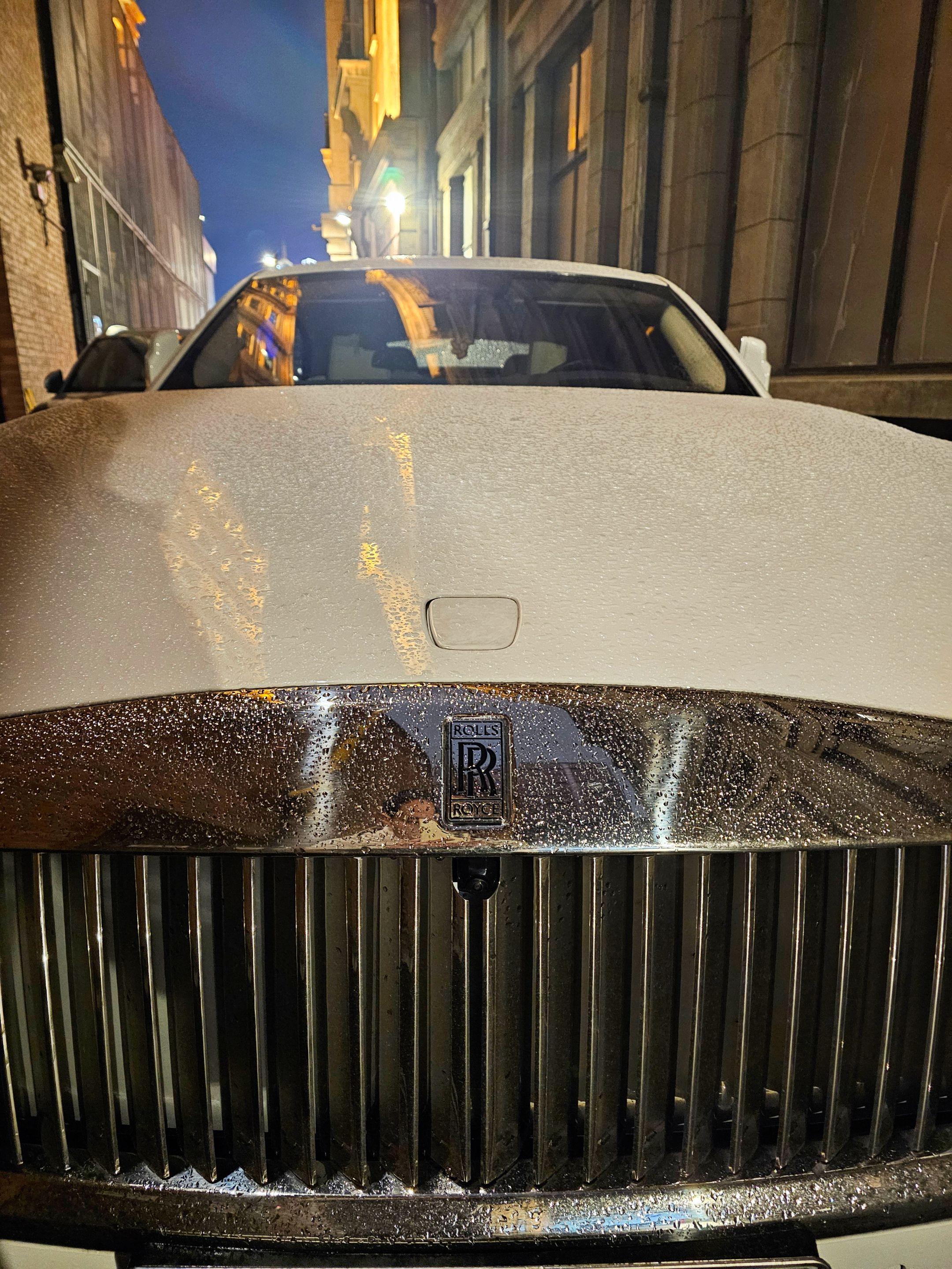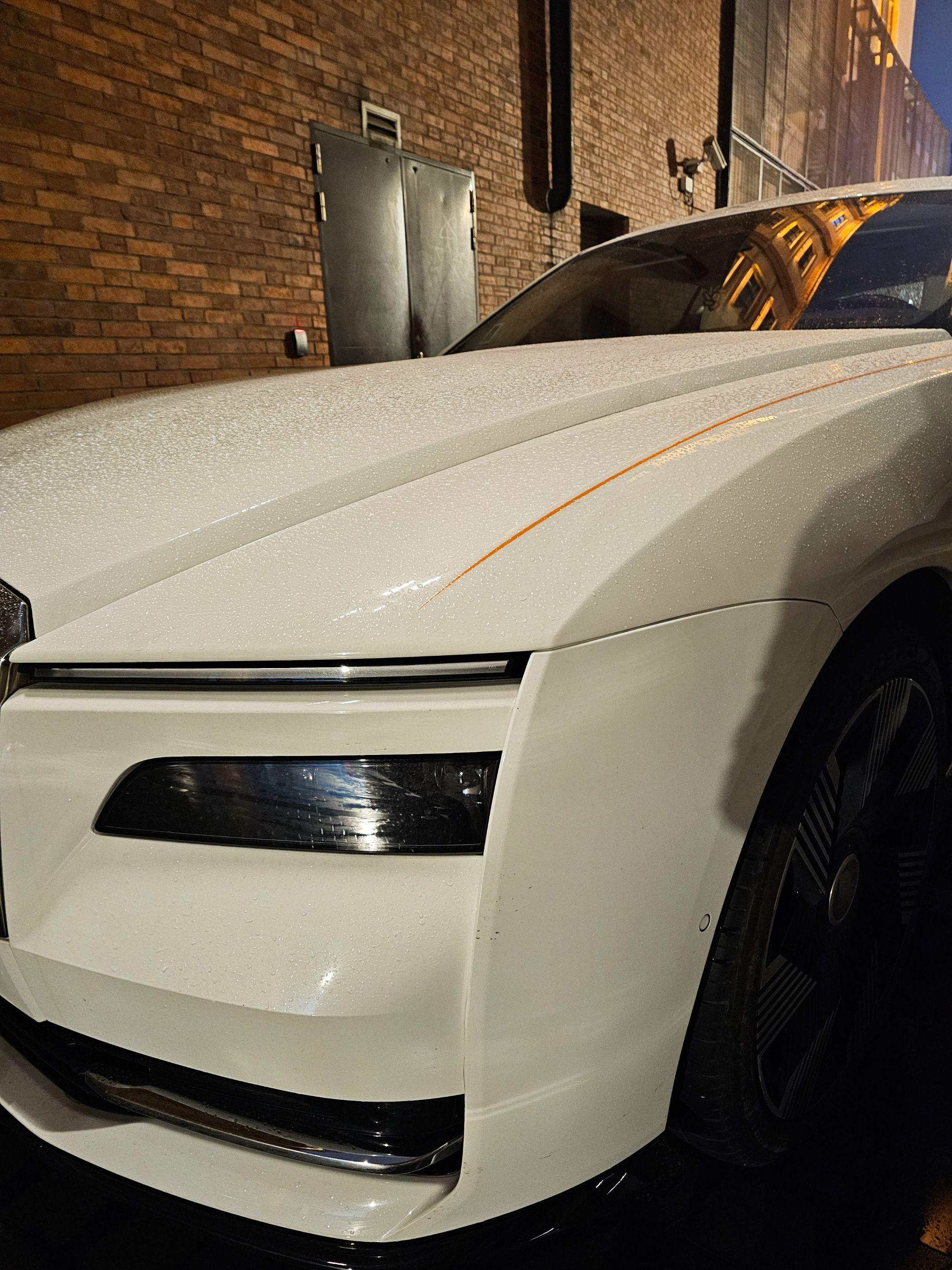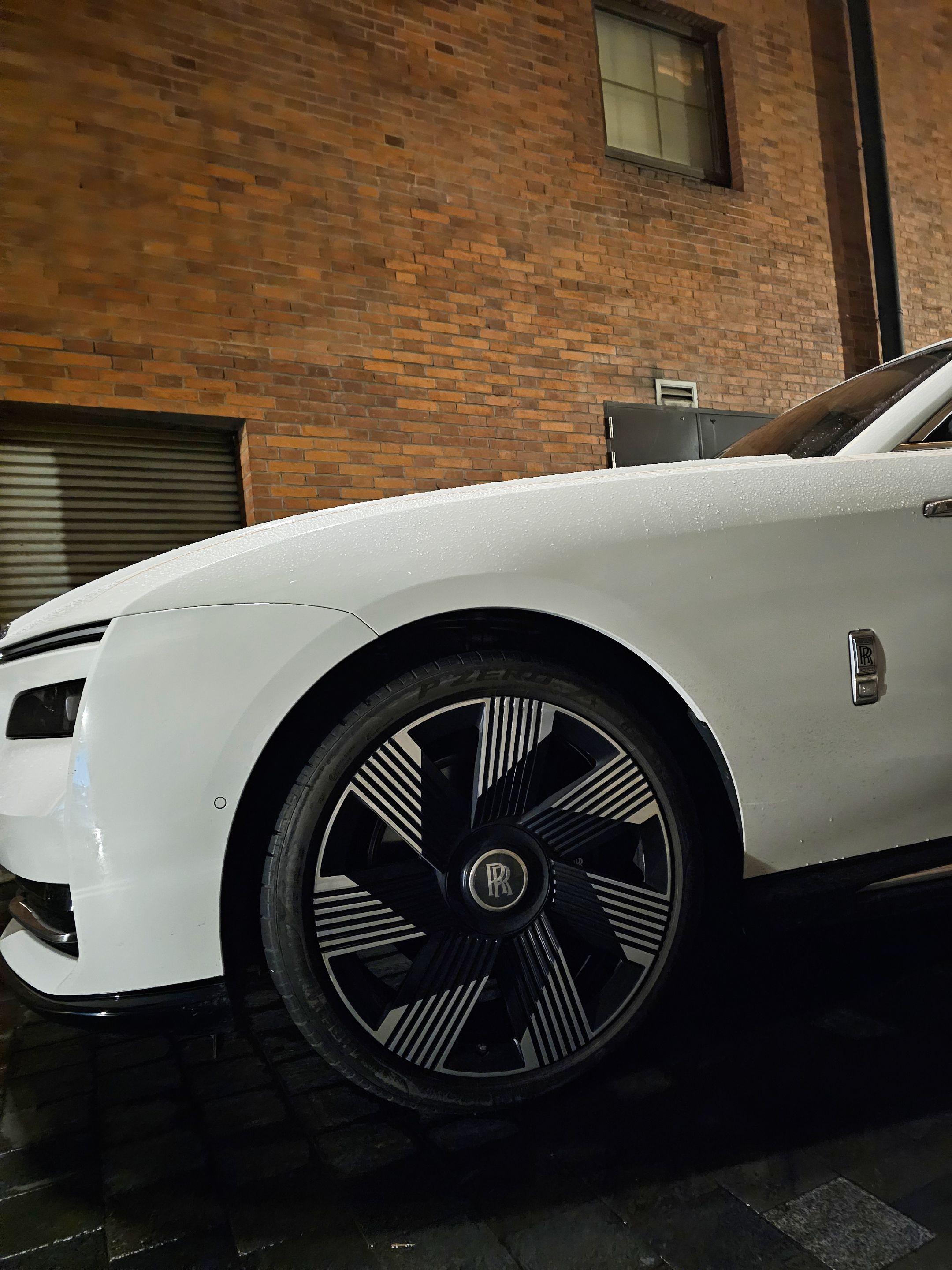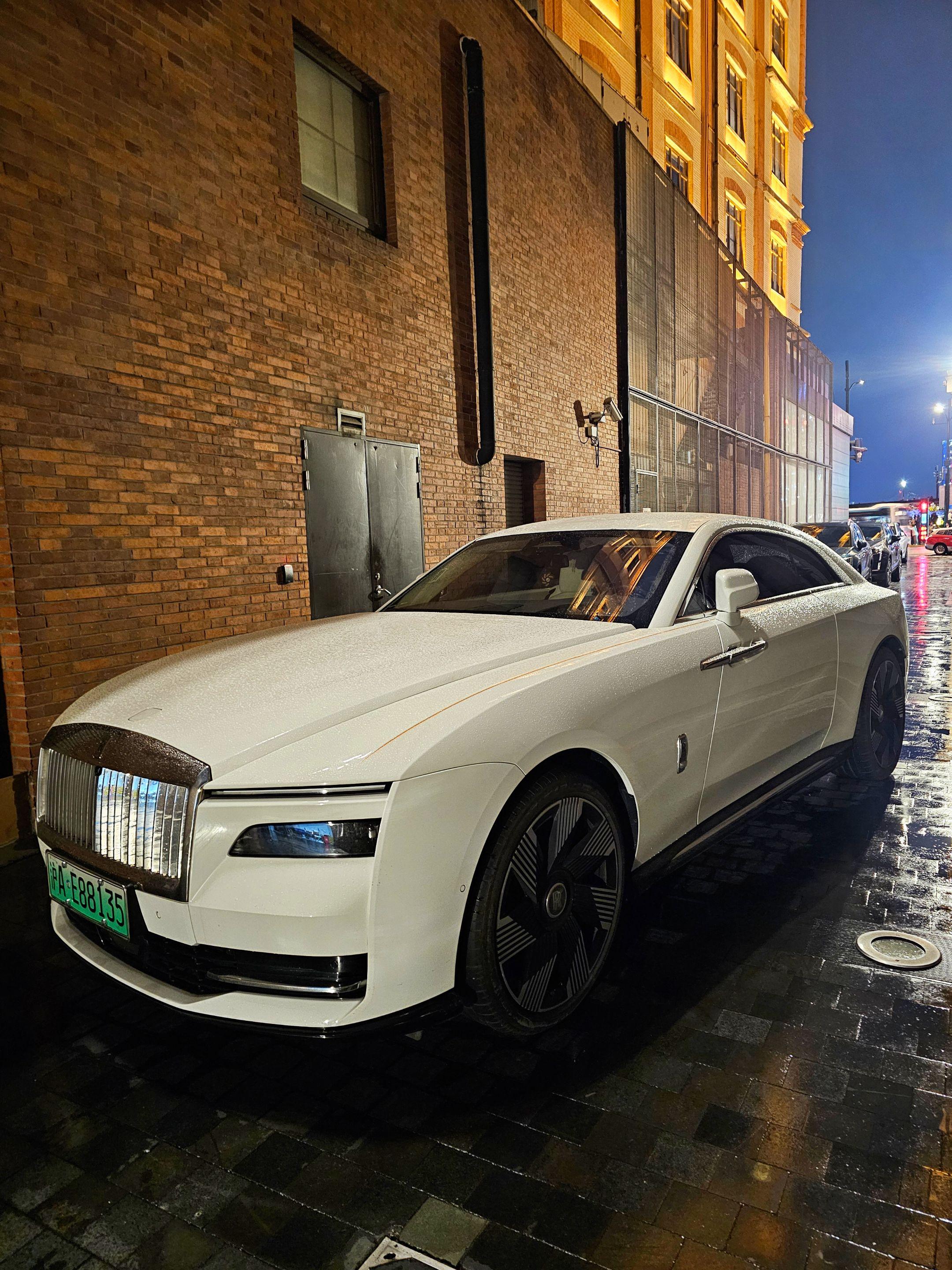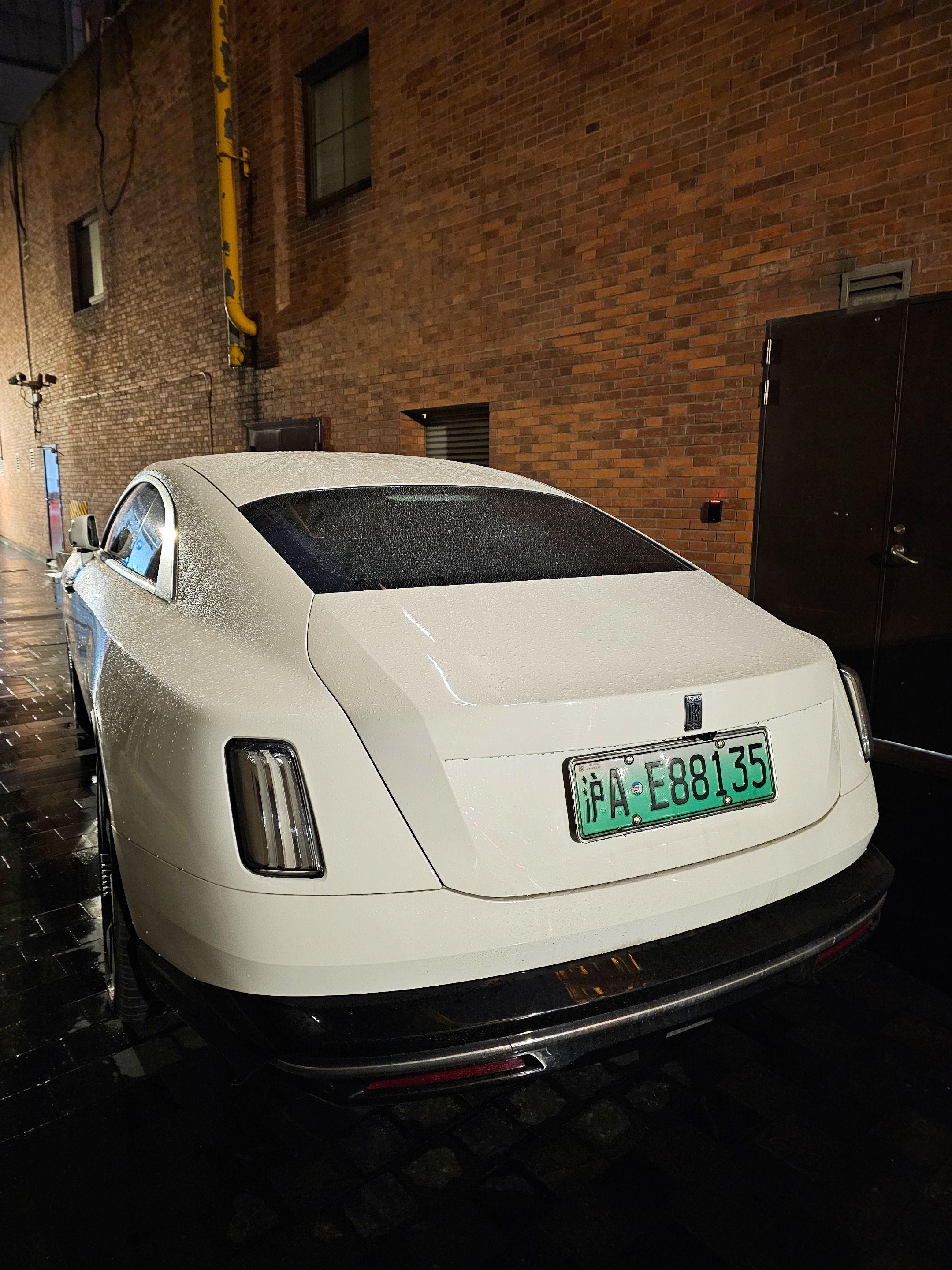 上海外滩偶遇地表最贵的电车劳斯莱斯闪灵,纯白色的外观和金色腰线23寸锻造轮毂真的太有韵味太好看了,买它的人也不在乎是不是绿牌了!
