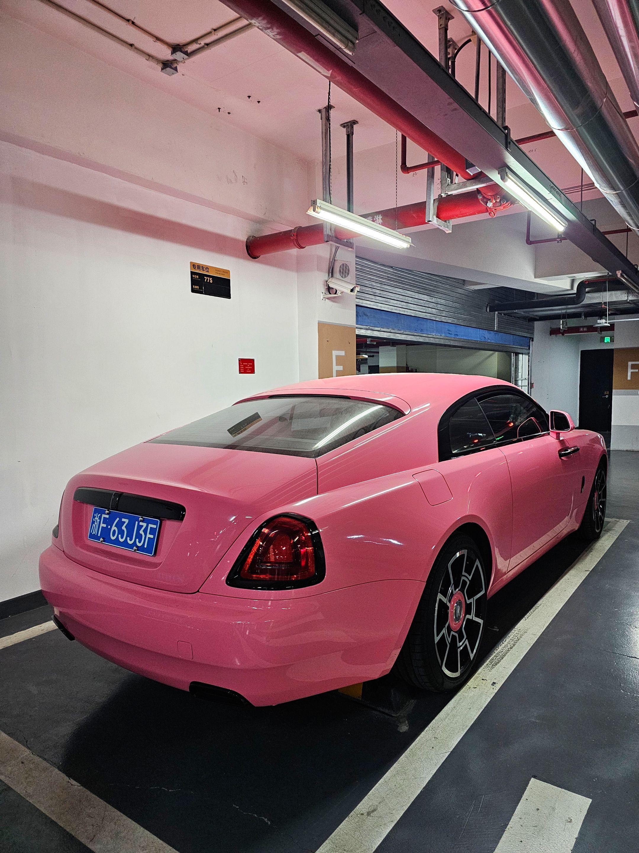 上海某地库偶遇小姐姐的劳斯莱斯魅影Black Badge 粉色外观粉色...