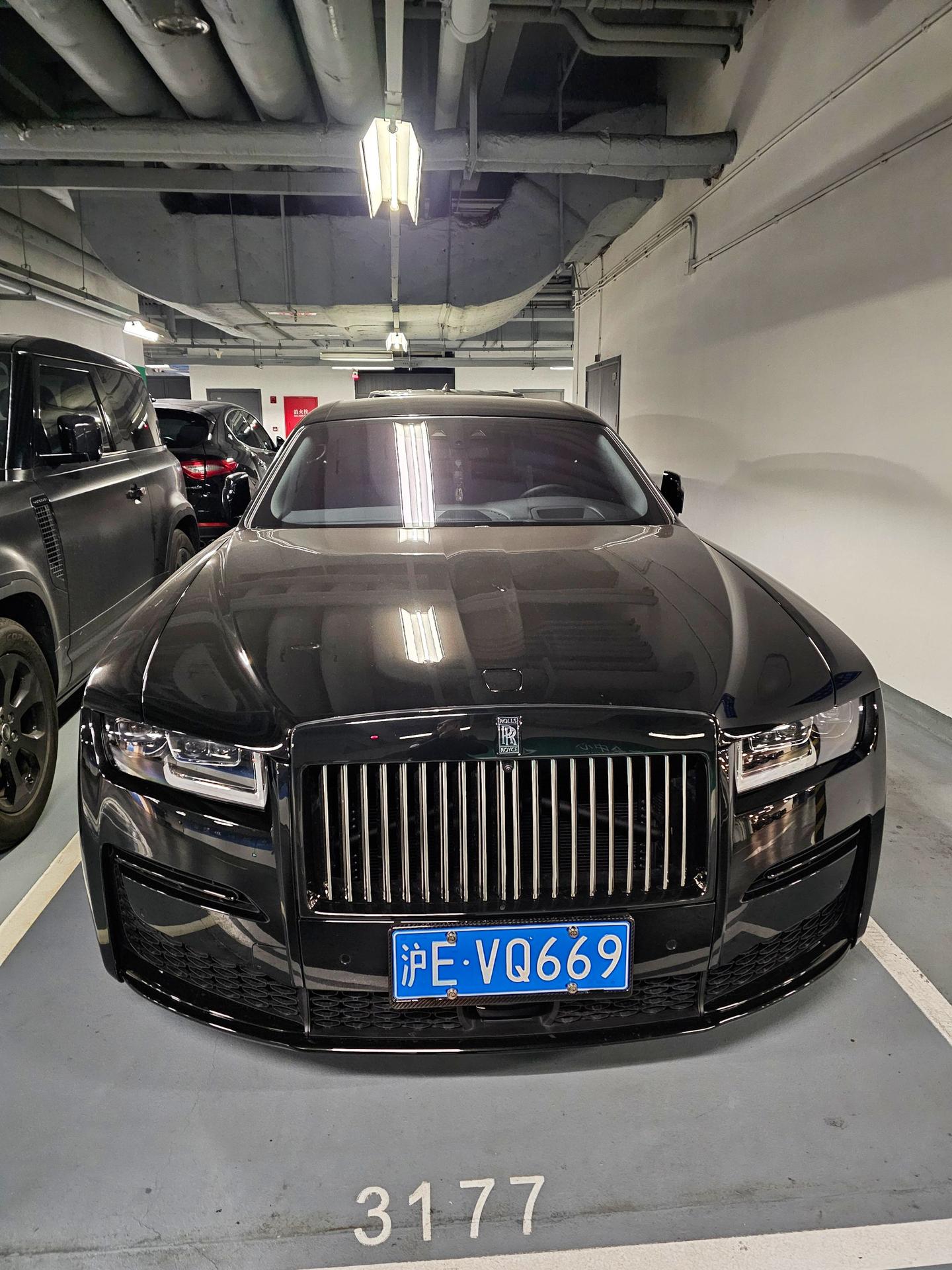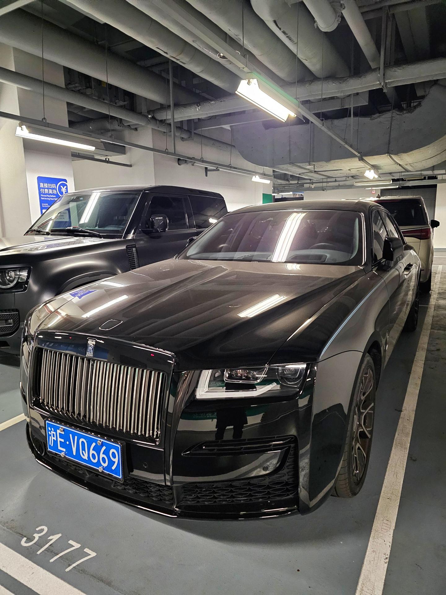 在上海某地库偶遇大佬座驾劳斯莱斯古思特Black Badge 黑色外观...