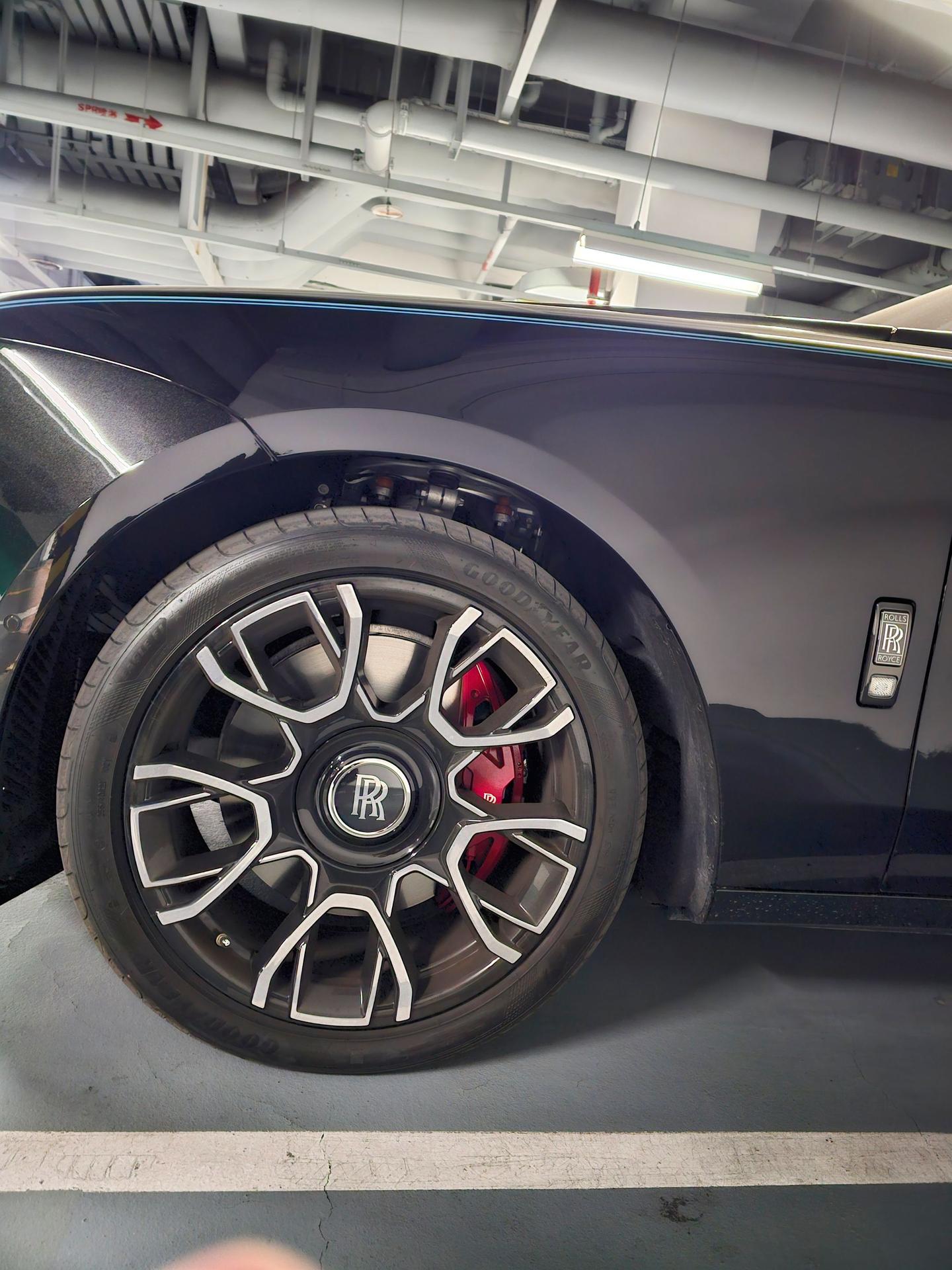 在上海某地库偶遇大佬座驾劳斯莱斯古思特Black Badge 黑色外观绿松石蓝的双腰线和内饰碳钎维的轮毂,优雅奢华实车看到太帅了!
