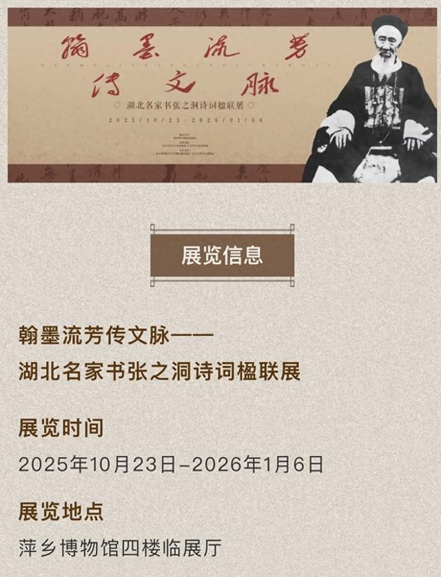 萍乡与武汉,从此在工业文明的脉络中结下深厚渊源。时光流转,文脉绵长。如今,两地因文化再度相聚,《翰墨流芳传文脉——湖北名家书张之洞诗词楹联展》在萍乡博物馆隆重亮相,展现鄂赣两省文化交融的深厚底蕴。