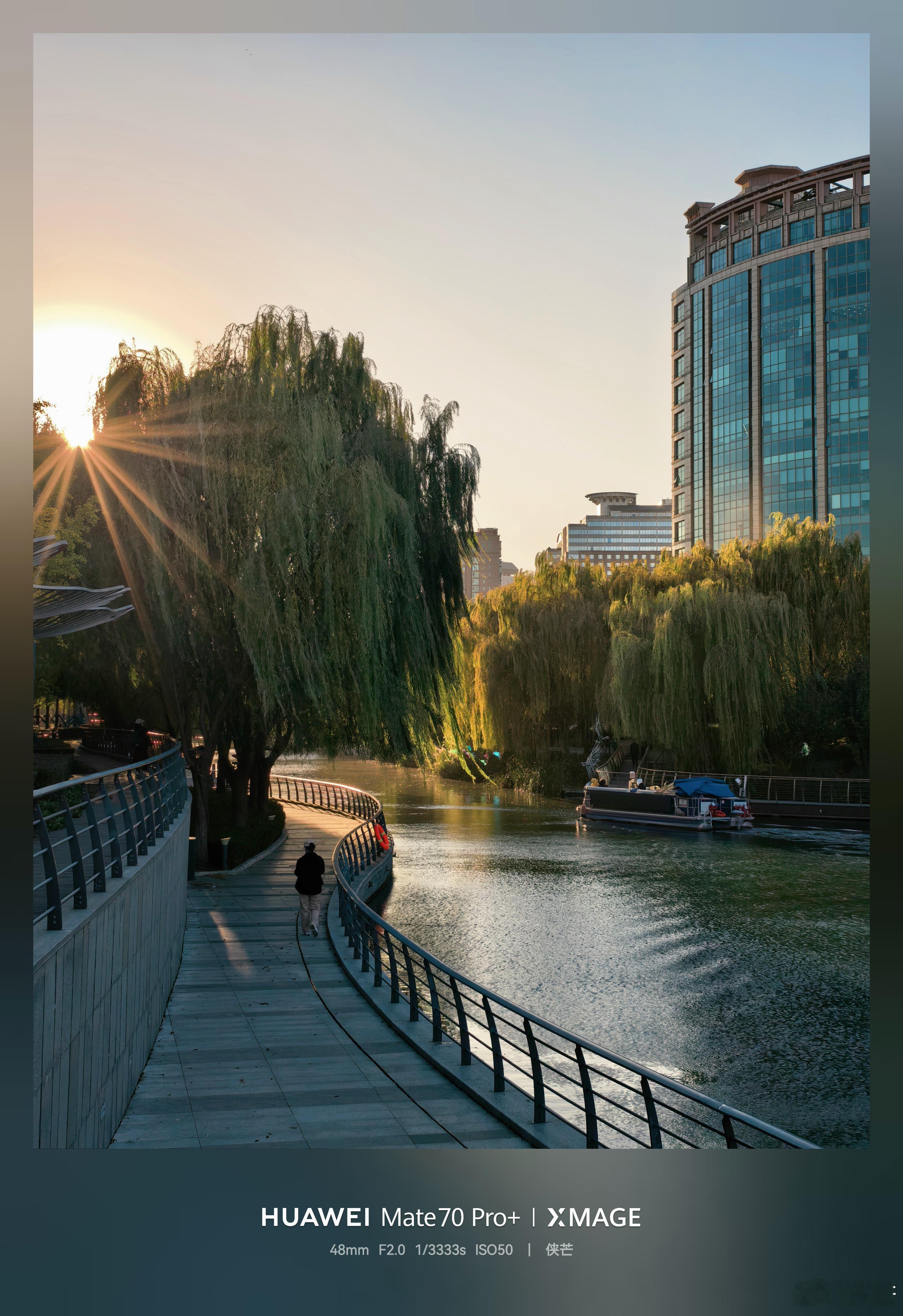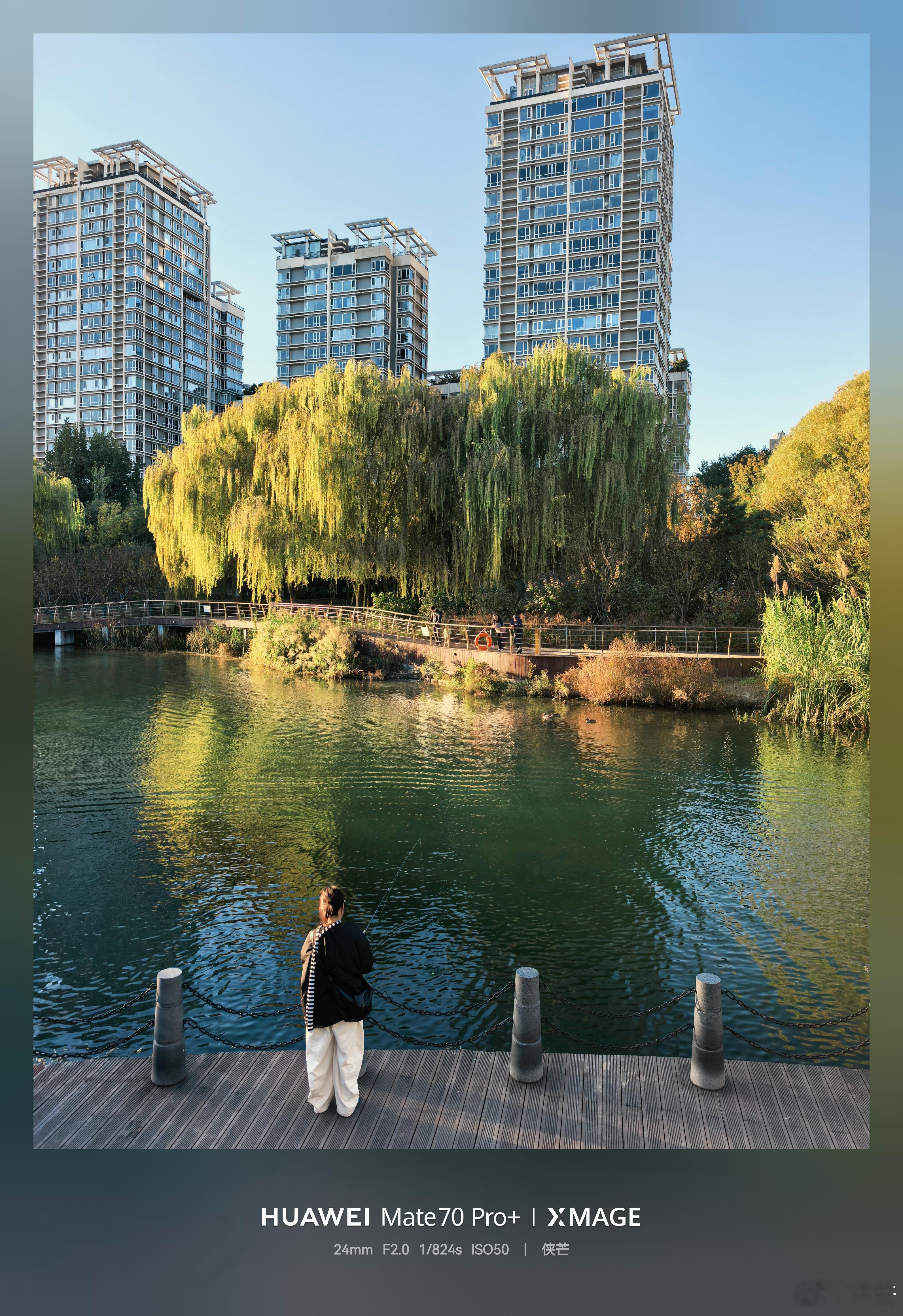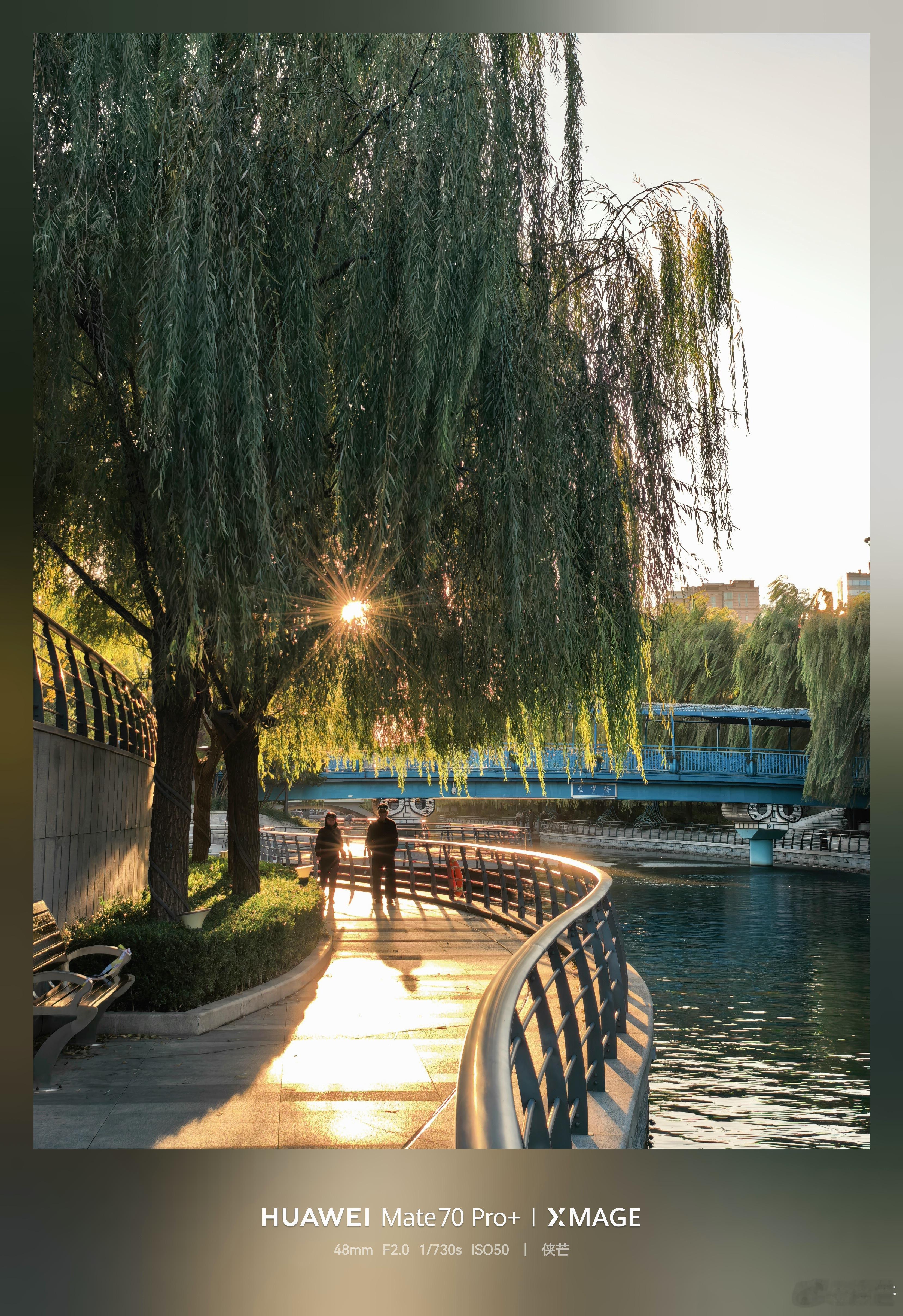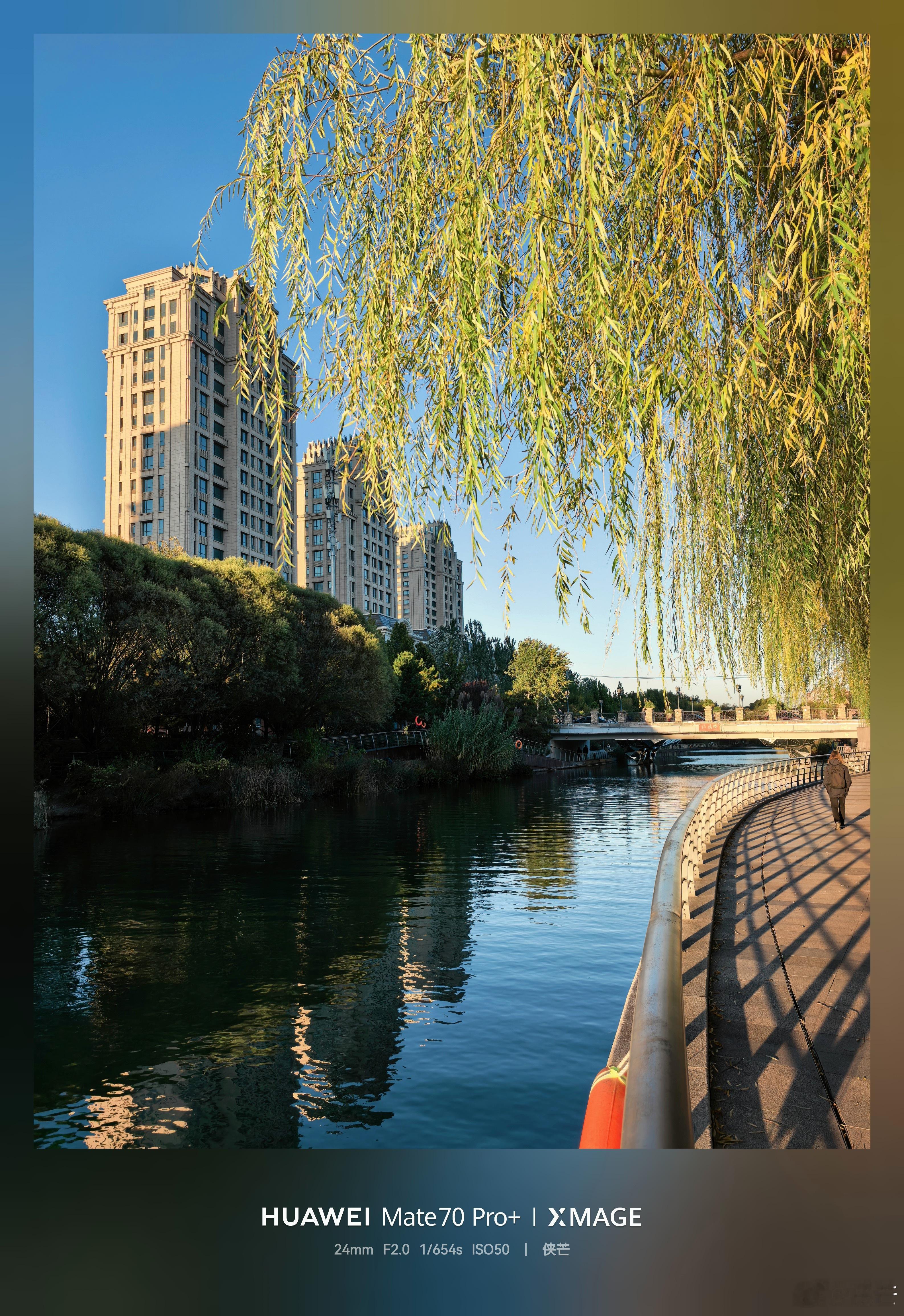 亮马河秋韵 深秋午后,阳光如金。柳树泛着柔和的金辉,仿佛整条河流都