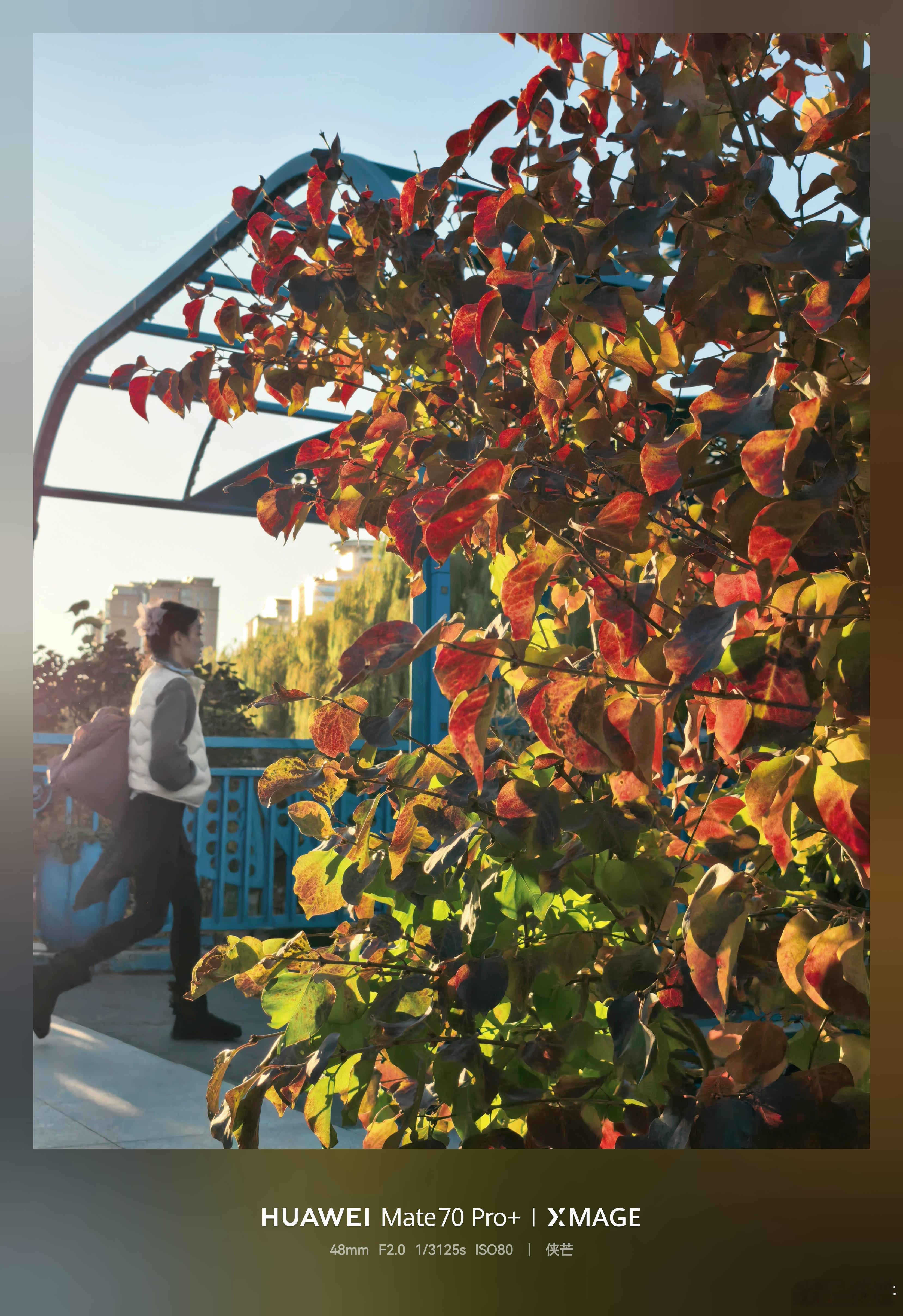 栈道上游人徐行,或驻足拍照,或凭栏远望。游船缓缓驶过,水波荡开。桥畔一丛黄栌已燃成火红,与金黄的柳色交相辉映。用镜头定格北京最美之秋