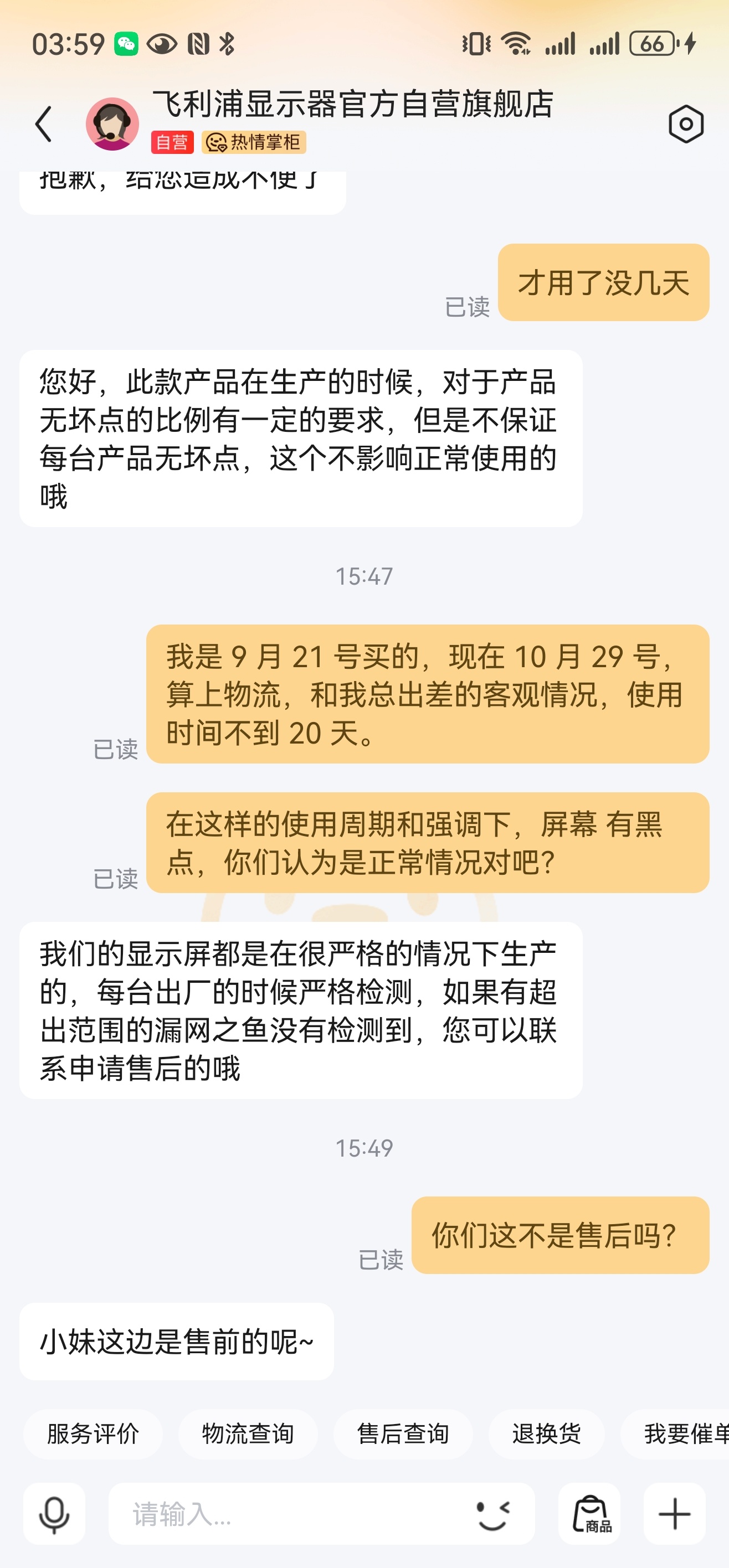 我联系售后,售后直接要寄走[笑cry]
