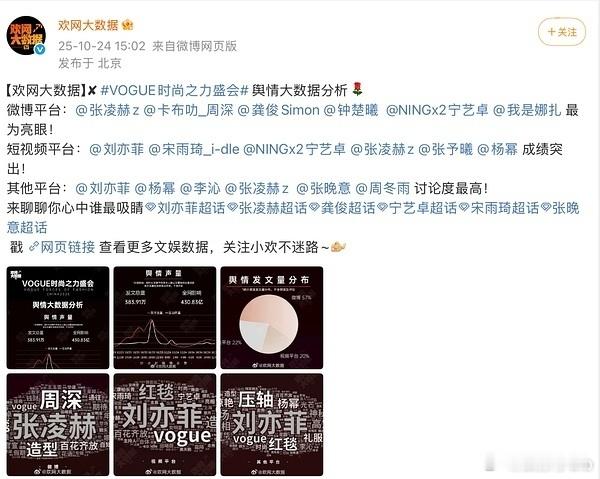 昨天的ELLE风尚大典全网大数据,好大的两个张凌赫,他星光确实厉害,记得上次VO
