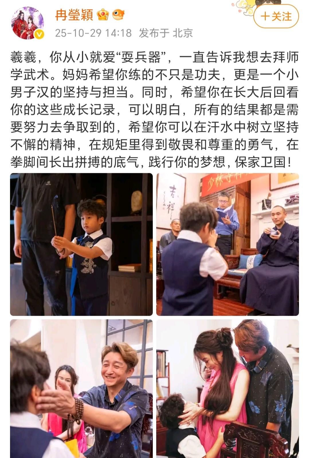 邹市明6岁小儿子拜师少林寺,法名“释恒一”,邹市明和冉莹颖的担忧和不舍让人泪目! 邹市明和冉莹颖的小儿子冉明羲拜师少林寺第三十四代弟子释延光,仪式上他双膝跪地,低头为师父奉茶。 冉莹颖鼓励儿子:“妈妈希望你练的不只是功夫,更是一个小男子汉的坚持与担当”,邹市明也对儿子寄予厚望“你要好好地跟师傅虚心学习,锄强扶弱,不能逞强斗狠。” 冉明羲倒是很轻松,郑重拜师后便恢复小孩子的调皮,不忘跟师父开玩笑“师父,祝你教人愉快,因为我有点皮。” 冉莹颖祝贺儿子离自己的梦想越来越近,习武是孩子的梦想,她和邹市明选择了支持。 星二代有很多更加轻松的路可走,习武注定很辛苦,邹市明和冉莹颖望向儿子的眼神中,有慈爱有鼓励也有深深的不舍。 可怜天下父母心,看着冉莹颖和儿子的捧脸照忍不住湿了眼眶 ,纵有千般不舍万般担忧也要成全孩子的梦想,为人父母者谁能不感同身受呢?
