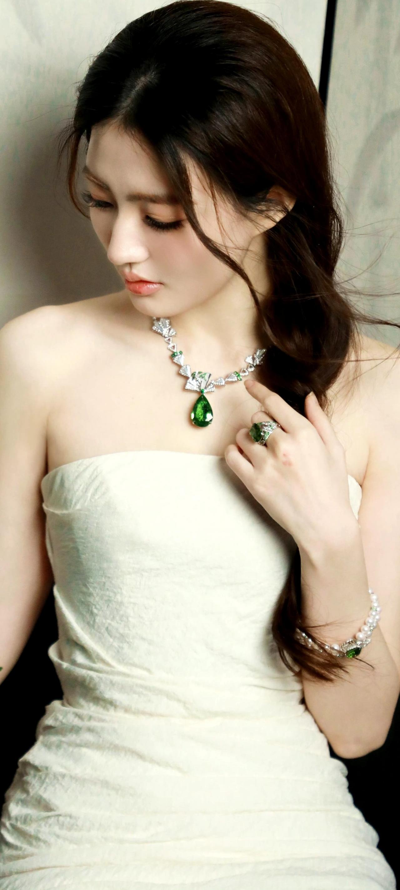 徐璐,优雅白裙,绿宝石项链,气质满分!💎✨徐璐 明星时尚 气质女明星 好身材性感女神
