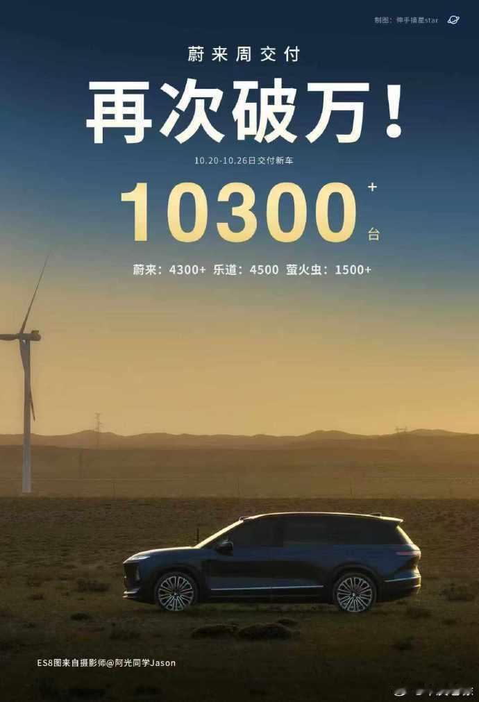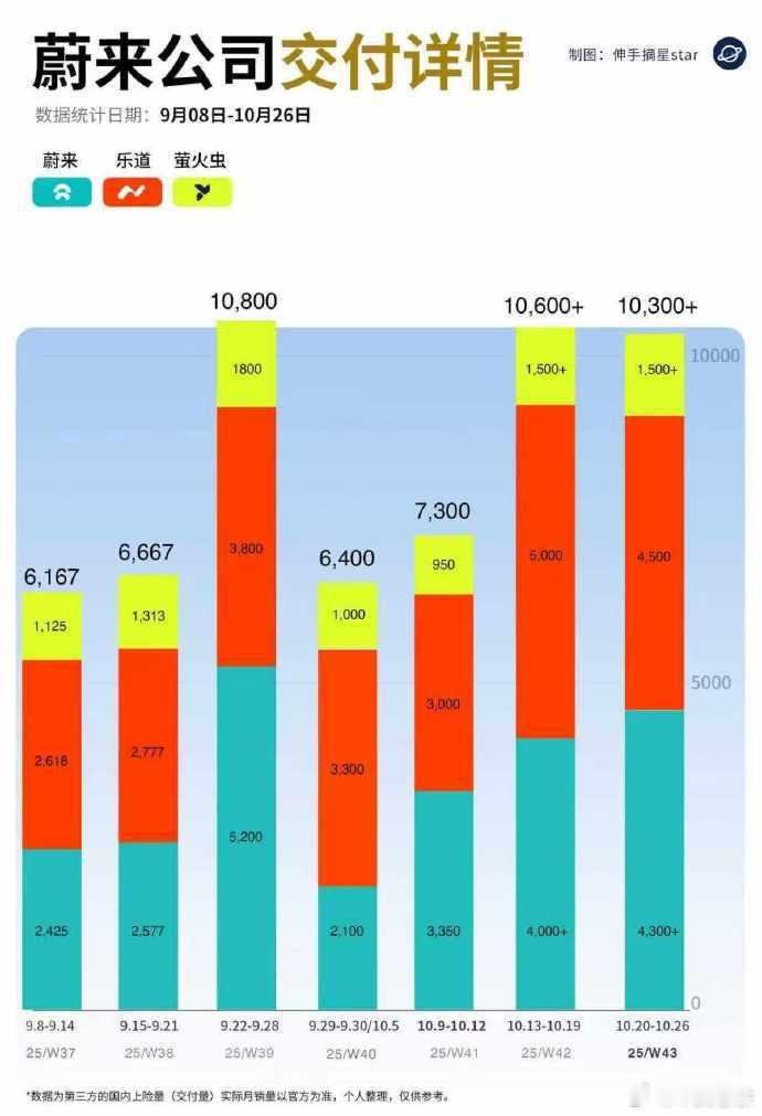 据车fans的数据:蔚来上周10月20至26日上险数据为10300+