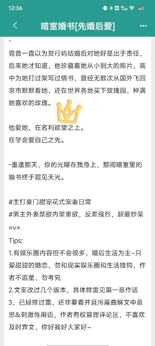 《暗室婚书(先婚后爱》by慕义 刚完结的文,一共95章 甜美女星vs深情大佬 谁懂这种年龄差体型差爹系男主的魅力!!男主超会啊啊啊,温柔甜美女明星×成熟多金京圈霸总,男主伺机上位,只宠他的小玫瑰! 好喜欢这本先婚后爱日常,男主温柔哄女主,雨天公主抱,耳垂kiss,她生病他推掉公事来探班,温柔把她抱在怀里哄睡,给她建游乐场,就问换谁能不心动!!!💕而且男主🚪前🚪后截然相反,嘿嘿超爱啊,好看姐妹们!!!!完结啦!