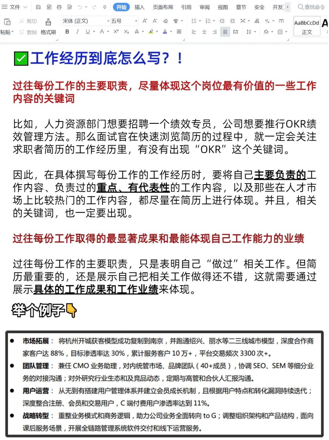 🟢很多人拿到了简历模板后,就开始纠结:那工作经历怎么写?(具体⏩看图3)