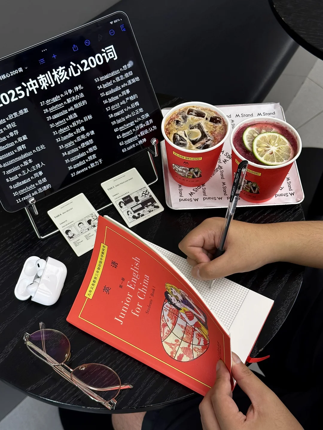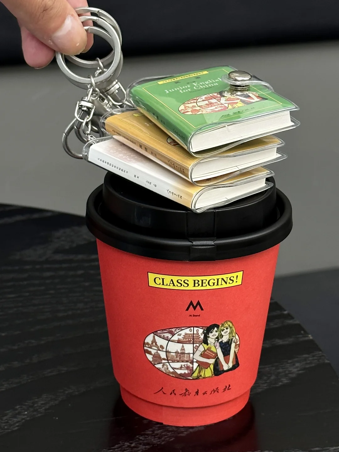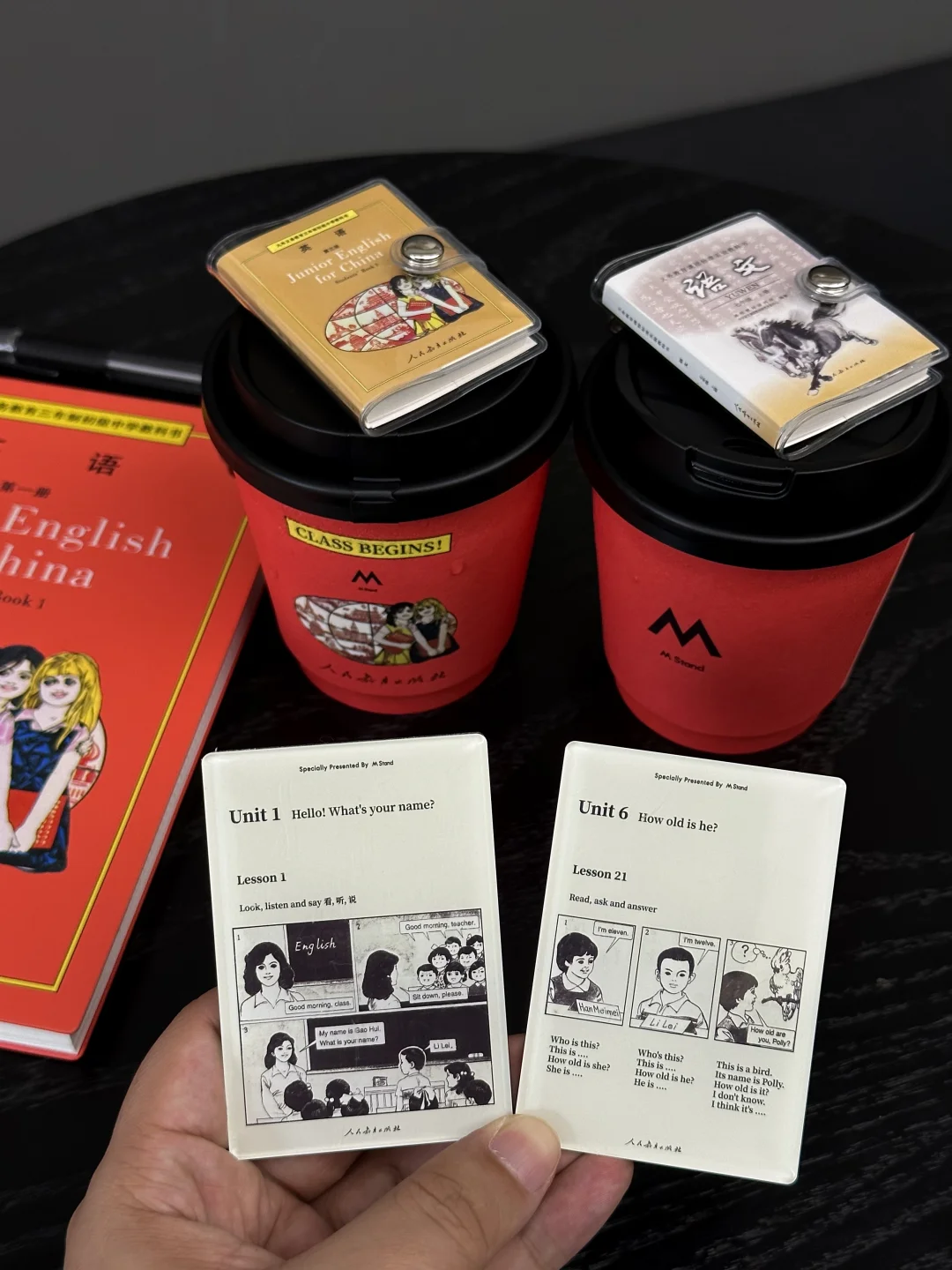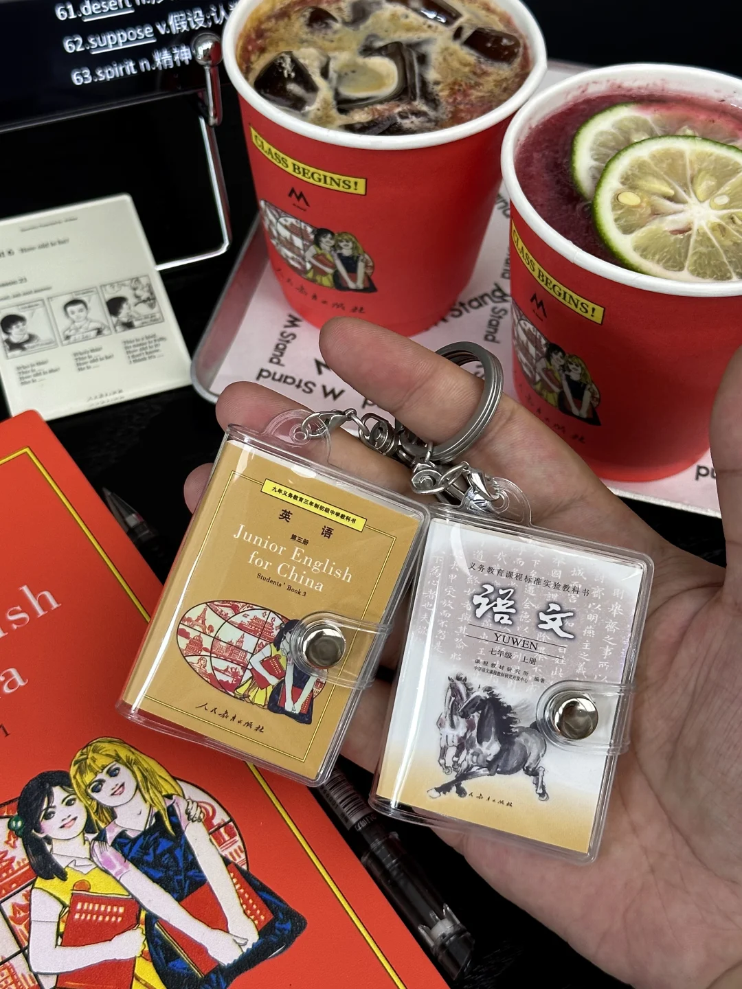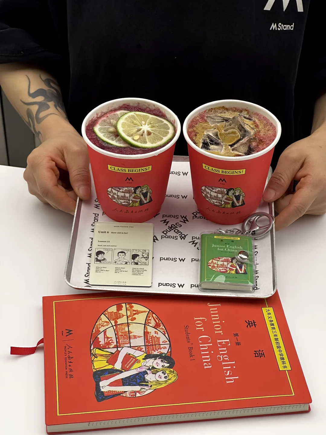 全是回忆杀!果然M Stand是懂情怀的!!! 跟人教社联动的书籍挂件盲盒,和用教科书内容图做的冰箱贴盲盒,还有以教科书为封面的笔记本!! 马上快要高考了📚,一瞬间又回想起了上学时候的场景~ 点了两杯M Stand石榴杨梅系列🫧 用带着果味的清爽气泡,褪去夏日的聒噪…