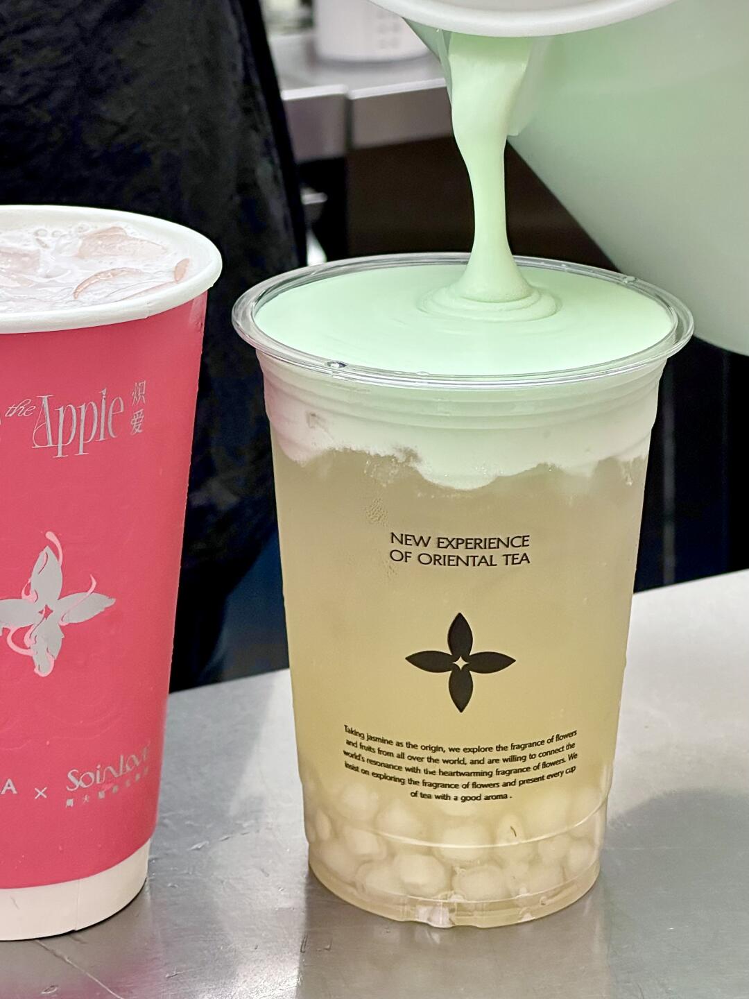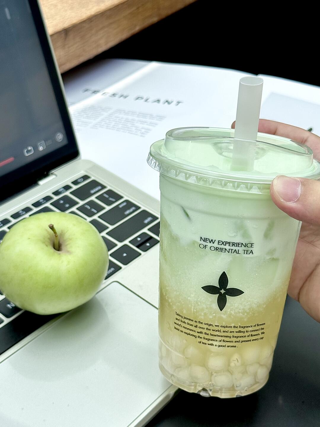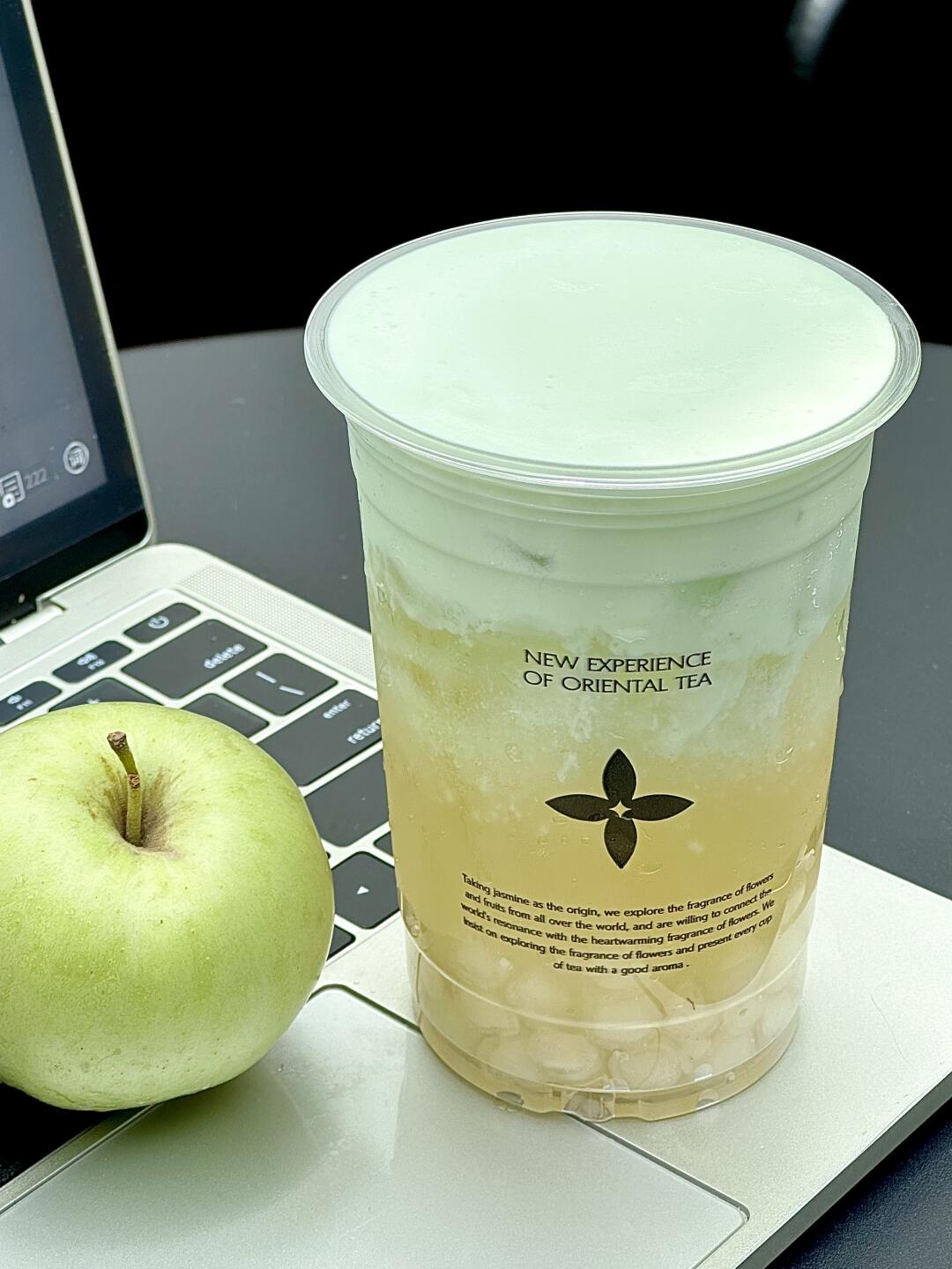 不开玩笑,这杯🍏柚子苹果观音清爽到家了!! 正常冰+五分糖,再额外加马蹄丸子/西米 喝起来是那种阳光晒透的自然果香! 青苹果的酸甜清爽感爆棚!!!
