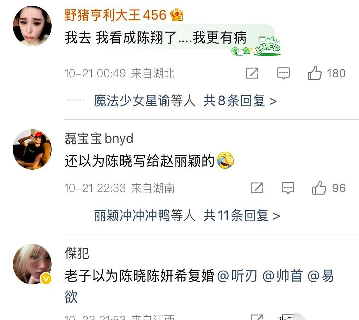 刷手机差点给我刷出心脏病。 一个推送弹出来,“陈晓发复合信”,我脑子嗡的一下,心说好家伙,大半夜的来这么刺激的? 赶紧点进去看,信写得那叫一个……九曲十八弯,不知所云。我这种吃瓜群众哪看得懂这个,直接空降评论区找课代表。 结果好家伙,评论区比我还懵。 一堆人都在问,这是啥情况?跟谁复合啊?怎么看着不像写给陈妍希的? 甚至有人都开始@另一个女明星了……那场面,简直是文艺复兴。 我正准备跟着一起分析字里行间的爱恨情仇呢,终于有个明白人喊了一嗓子: 哥们姐们,看清楚啊!是“陈哓”!不是“陈晓”! …… 空气突然安静。 你说这事儿好笑不好笑。 一堆人,大半夜不睡觉,对着一个陌生人的情书,真情实感地讨论着另一个明星的陈年旧事。甚至还有人已经脑补出了一场破镜重圆、“意难平”终于平了的年度大戏。 互联网真有你的。 也挺好,大家集体当了回演员,陪着演了场乌龙戏。演完了,洗洗睡吧。