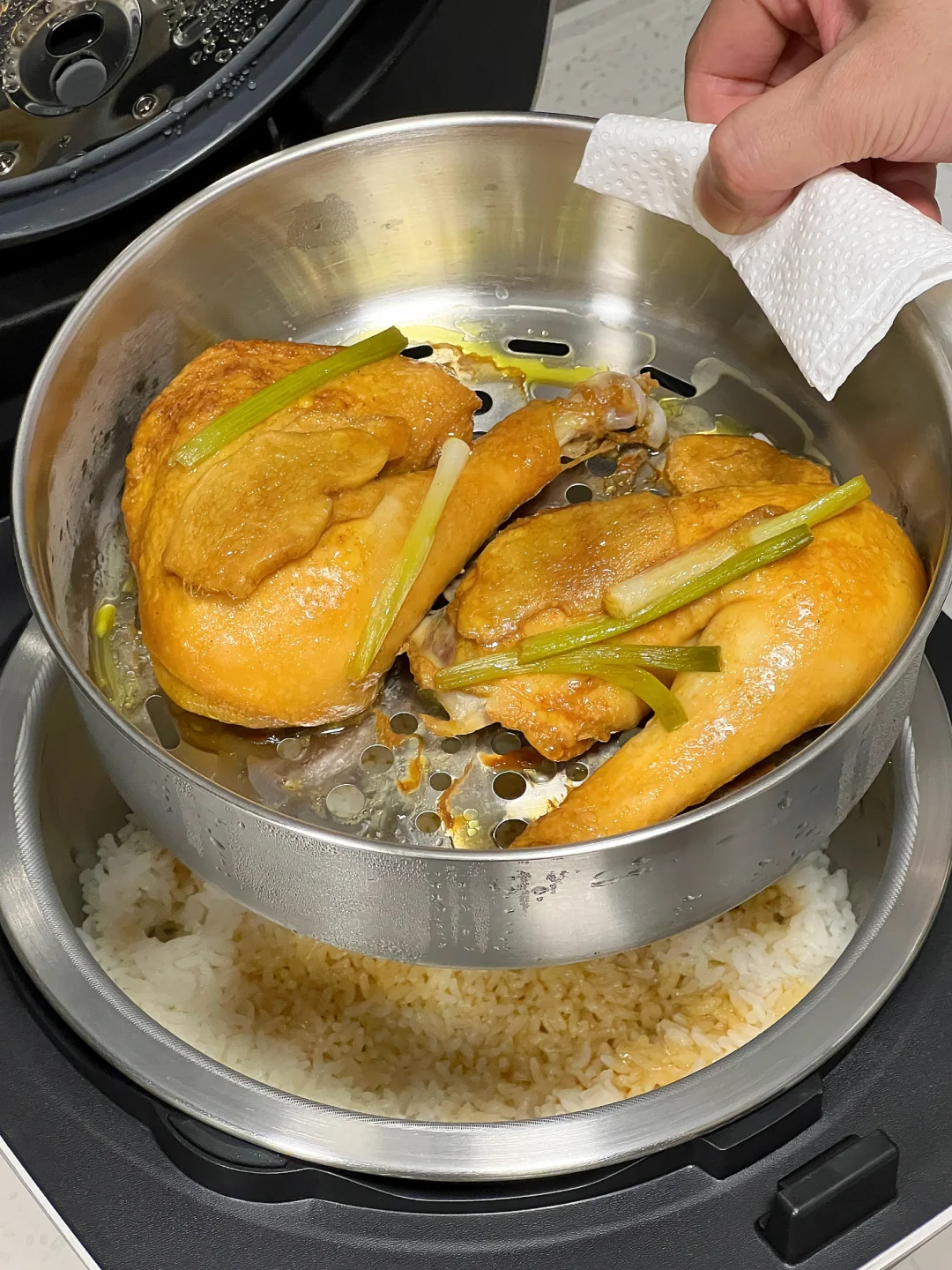 吃完男朋友做盐焗鸡腿饭,内胆还特好收拾,不用泡水,就能马上清洗干净,内胆碰到钢丝球狂刷都没划痕,真的爽飞~这才是爱干大米饭的我该有的快乐厨房!