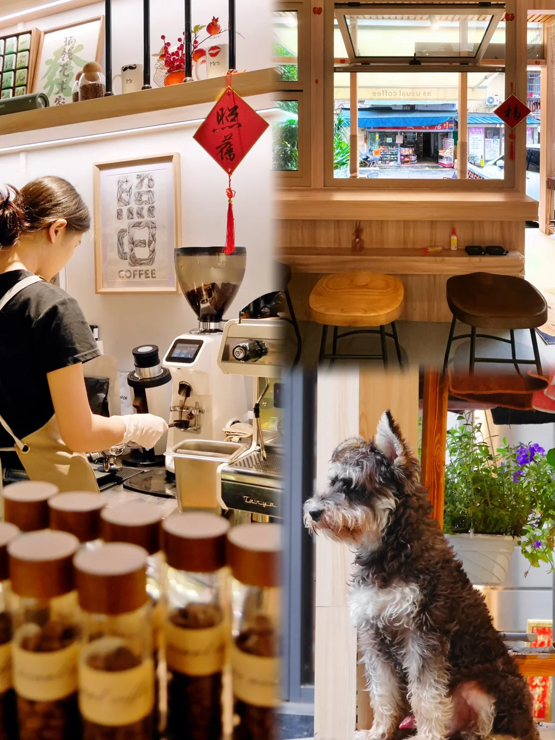社区店,店里有只8个月大的小狗就叫coffee,活泼亲人。