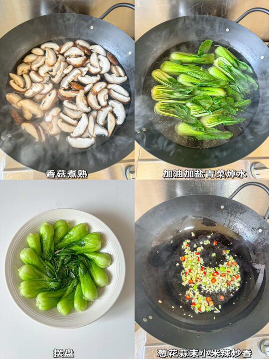 ❤️食材:青菜/香菇/葱花蒜末/小米辣