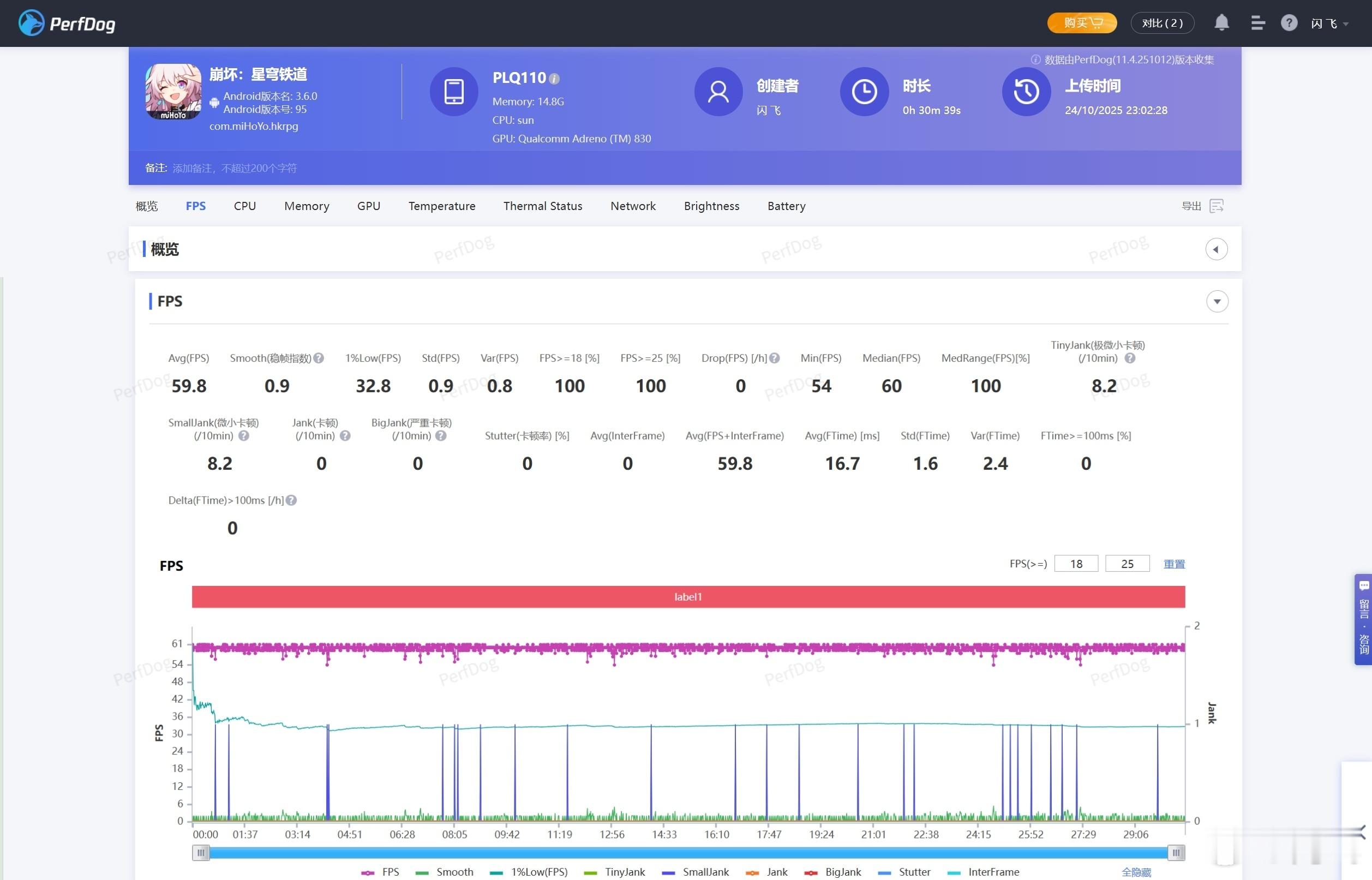 先前用腾讯PerfDog测了一些数据,包括《原神》璃月港和《崩坏:星穹铁道》星槎海中枢的跑图帧率,大伙有条件的可以对比一下友商旗舰的平均帧率和1% Low帧,就知道我说的真不夸张。