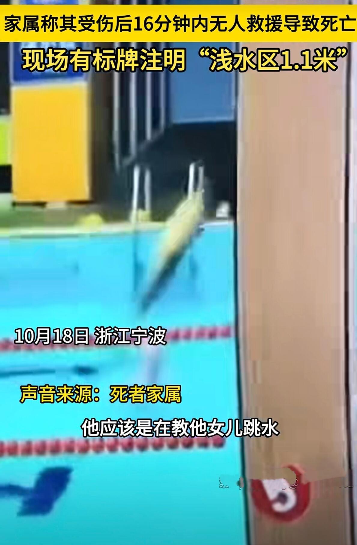 这事儿真的太让人难受了。宁波一个36岁的体育老师,带着7岁女儿去游泳馆,本来是高高兴兴的亲子时间,结果人就没了。 悲剧发生在10月18号傍晚。这位胡老师站在浅水区边上,水深才1.1米,他想给女儿演示跳水动作。谁能想到,这一跳下去,头直接撞到了池底,人就再也没起来。 最揪心的是,他7岁的女儿全程目睹了一切。孩子看着爸爸脸朝下漂在水里,伸手去拉又拉不动,吓得赶紧跑回家找妈妈。从出事到孩子跑出去求救,整整16分钟,救生员居然一直没出现。游泳馆后来的解释简直气人,说当时是“吃饭时间”,救生员看到孩子在旁边,还“以为是父女俩在闹着玩”! 这说得过去吗?浅水区跳水多危险,救生员能不知道?三个救生员都在场,却没人当回事,这责任心被狗吃了吗?等最后把人捞上来,虽然还有心跳,但已经来不及了。 一个好好的家就这么碎了。女儿亲眼看着爸爸出事,这得留下多大的心理阴影?游泳馆这种地方,安全就是天大的事,救生员岗位形同虚设,一句“我以为”就能推卸责任? 现在说是成立了专班在处理后续,但人命没了,再怎么赔偿也换不回来。真的,这种公共场所的安全问题,不出事则已,一出就是大事。希望这次能真正给所有游泳馆敲个警钟:别等出了人命,才想起来要负责任。