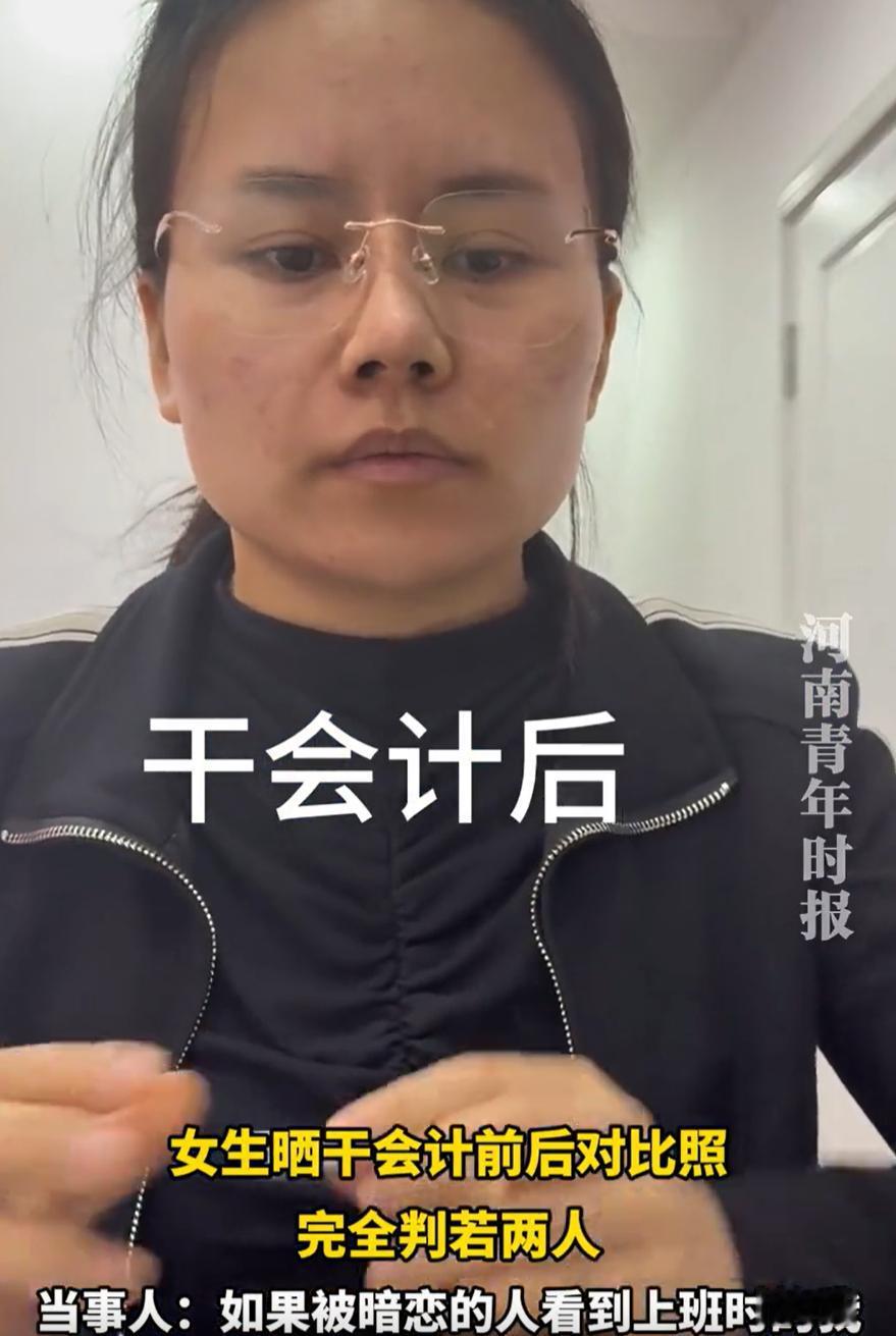 “判若两人!”云南,一女子晒视频自己干了两年会计的变化,前一秒还是红唇波浪的御姐,后一秒就变成了素面朝天坐在办公室的牛马,女子不忘调侃自己:只要上班足够丑,下班就没人认识我! 爱美之心人皆有之,尤其是对于女生而言,护肤、打扮并不一定是做给别人看,而是很自主的行为,而一个女生如果整天素面朝天,或许说明了那真的是工作需要 镜头前,她先展示了两年前还没干会计的自己:长发微卷,妆容精致,黑色礼服衬得气质出众,红唇勾勒出自信笑容。那时的她坐在车里自拍,美瞳下的双眼明亮有神,妥妥的御姐范 可在干会计后,波浪卷发不见了,美瞳也变成了有框眼镜,虽然能看出底子还不错,但很难想象和前一秒的是一个人 对此,这也引起了不少网友的共鸣,许多同行纷纷留言,说会计这个行业确实不需要花枝招展,更需要稳重可靠的形象 有人直言,从业久了,化妆都成了奢侈,每天只想多睡十分钟。还有人说,看到这个视频终于释然了,原来不是只有自己这样 其实想想确实如此,会计这个行业有个有意思的现象,越是干得久的人,越趋向朴素。因为客户和领导看重的从来不是你漂不漂亮,而是你报表准不准确、逻辑清不清晰。工作越细致的人,越不愿意花心思在外表上折腾。外表的“褪色”,往往是专业沉淀的开始 不过有一说一,女生变素,不一定是“放弃自己”,更多是她开始分清什么才是重要的。该精致的时候依然能光彩照人,只是工作时,她选择把精力放在更需要的地方。那些看似“没打扮”的样子,其实是她们最真实、最松弛的一面