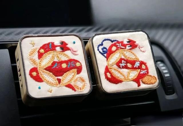 《手工刺绣车载香薰》以苗族“蝴蝶妈妈”文化符号与蛇年专属吉祥纹样为设计核心,巧妙运用挑纱、和平绣、盘金绣三种传统技法打造外观;香气上从色彩视角出发,融入艾草、薰衣草等源自大地的植物芬芳,既实现视觉与嗅觉的和谐统一,又发挥醒目提神的功效。