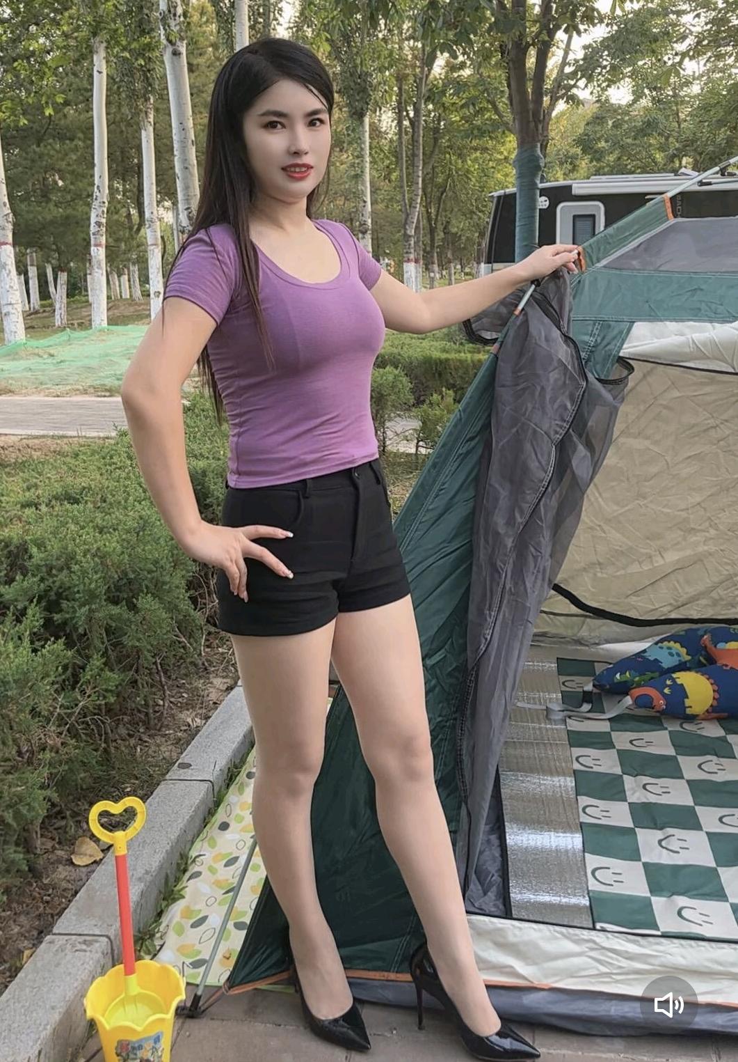 浅蓝宽松上衣配短裤,挎个粉包,笑容挺亲切。这身穿搭看着舒服,日常出门这样穿挺自在