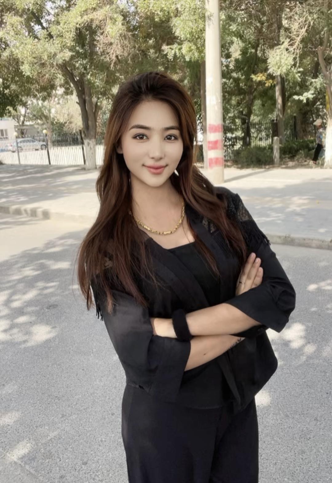 甜美自拍,金链闪耀,黑发飘逸,时尚穿搭