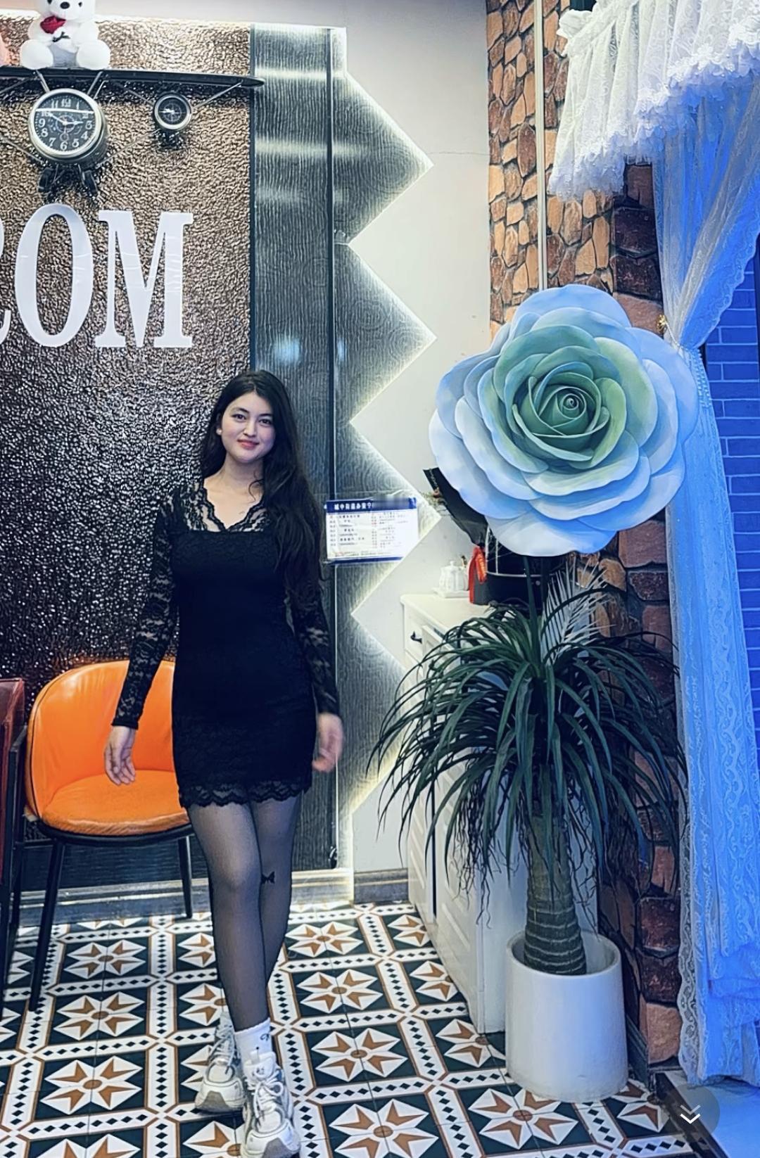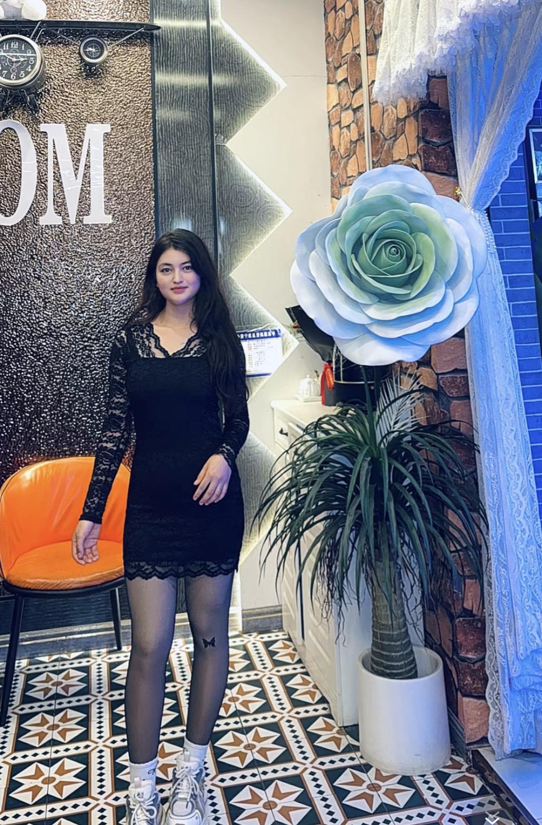 夜晚的竹林,静谧的氛围,优雅的黑色蕾丝裙,自然与时尚的完美结合。