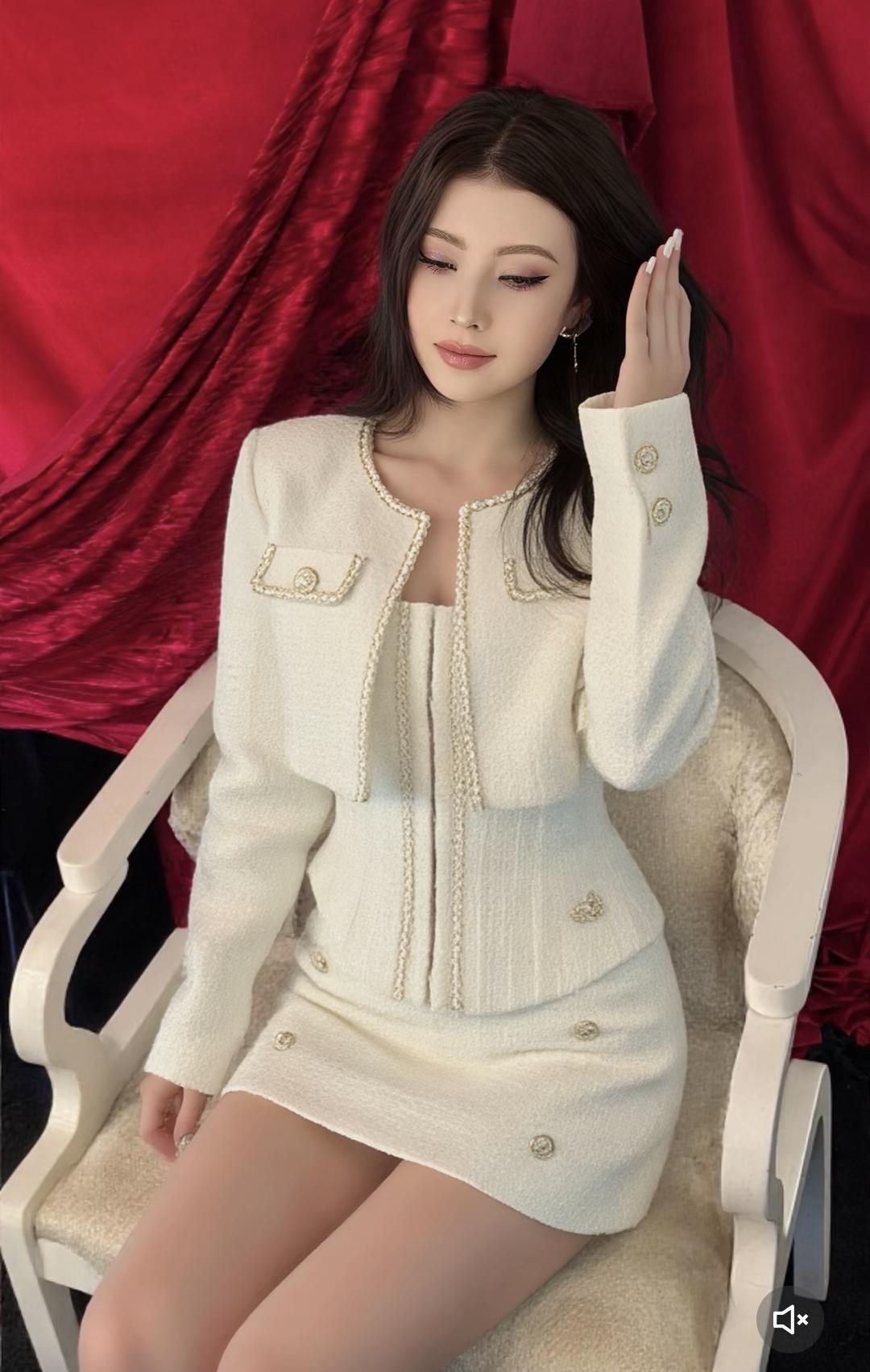 优雅气质,米色套装,时尚穿搭,精致妆容,魅力四射!