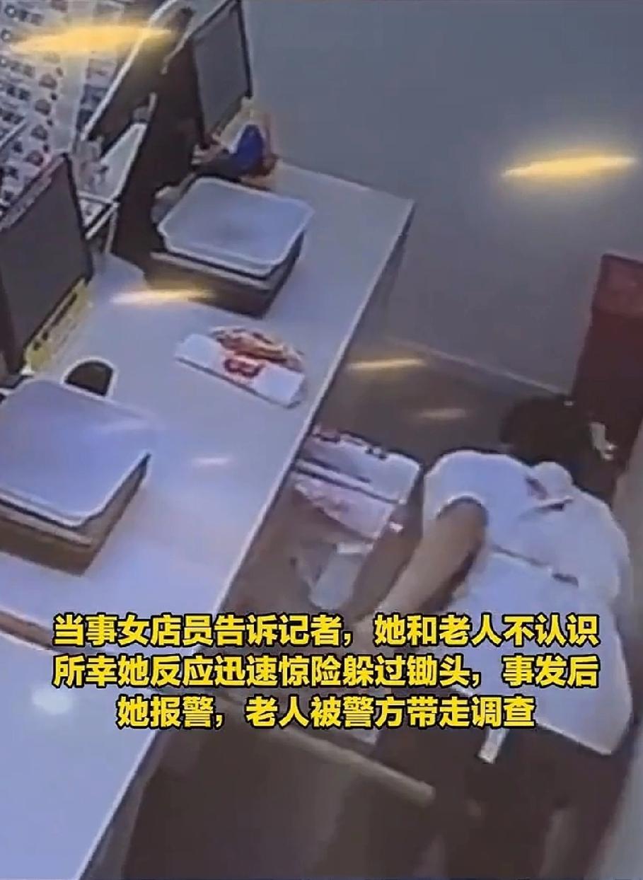 10月29日,江西新余。中午12点,赵一鸣零食店的女店员发现一名老人,持一长柄锄头进了店。她以为是顾客,正想着为他提供服务。哪知老人持锄头就向她砸去,吓得她头一低,躲过了这一击。迅速跑出去报了警。 民警将涉事双方带到派出所做笔录,老人的家人也过来做配合。女店员称,她不认识老人。警方回应,无人受伤。目前,事件原因正在进一步调查中。 老人为何性情突变,拿锄头袭击店员,尚不得而知。也可能是老人觉得自身很孤独的原因吧。现在社会巳进入了老龄化,老人的子女忙于自己的工作,缺少时间对他们的照顾,让老人备感孤独。希望家人们多抽出时间陪陪老人,让老人安度晚年。 警方回应老人持锄头袭击零食店员工老年人
